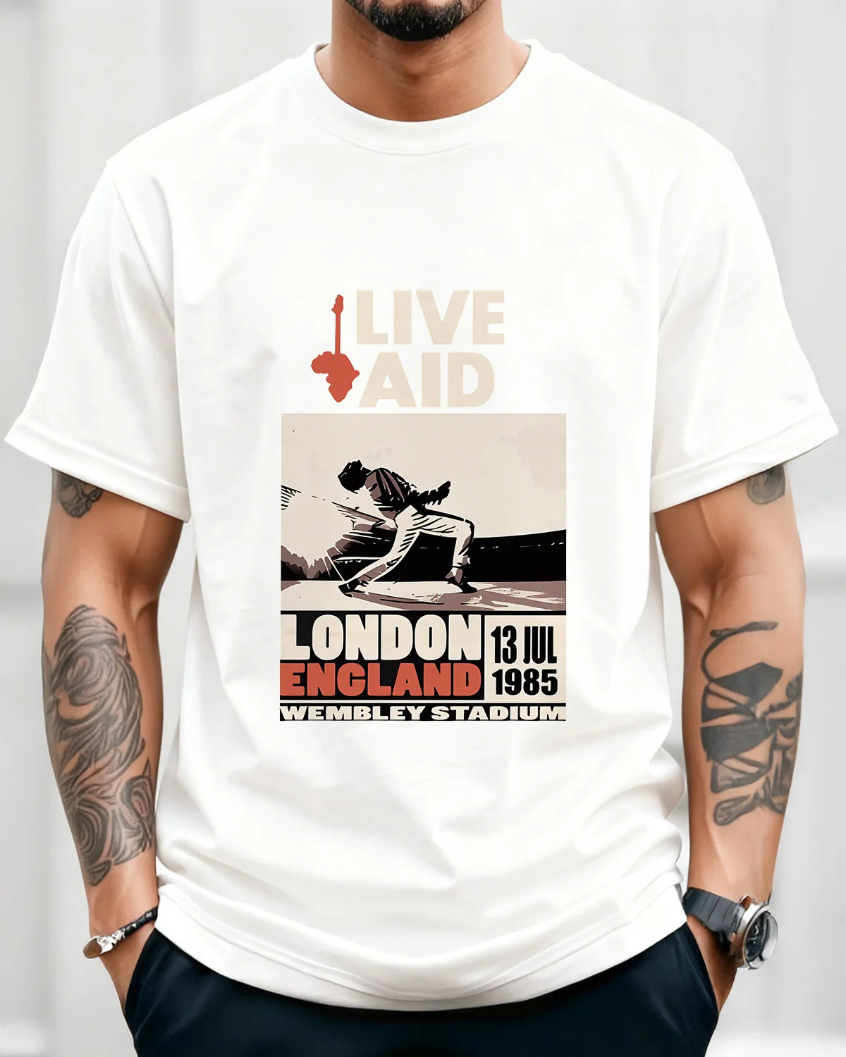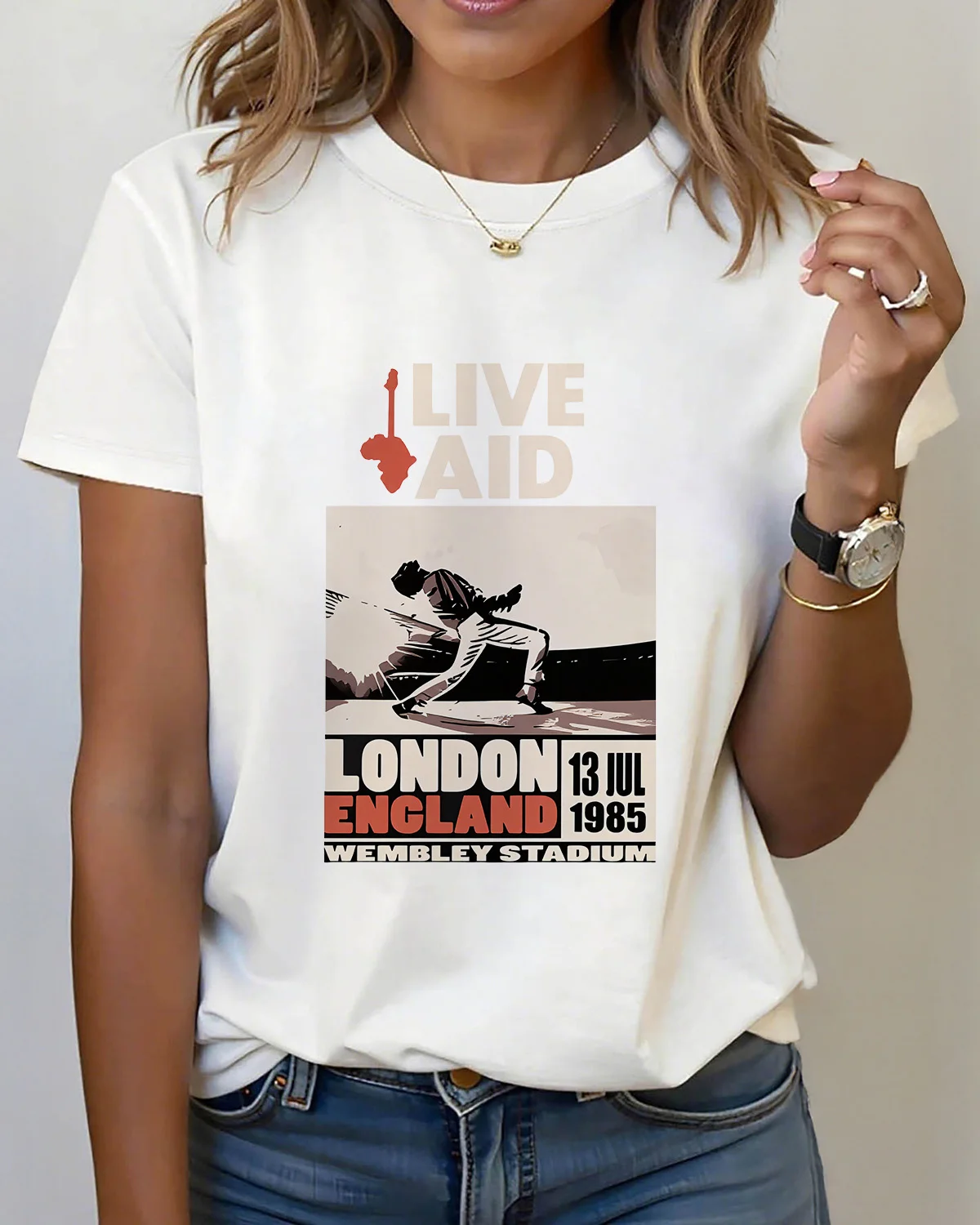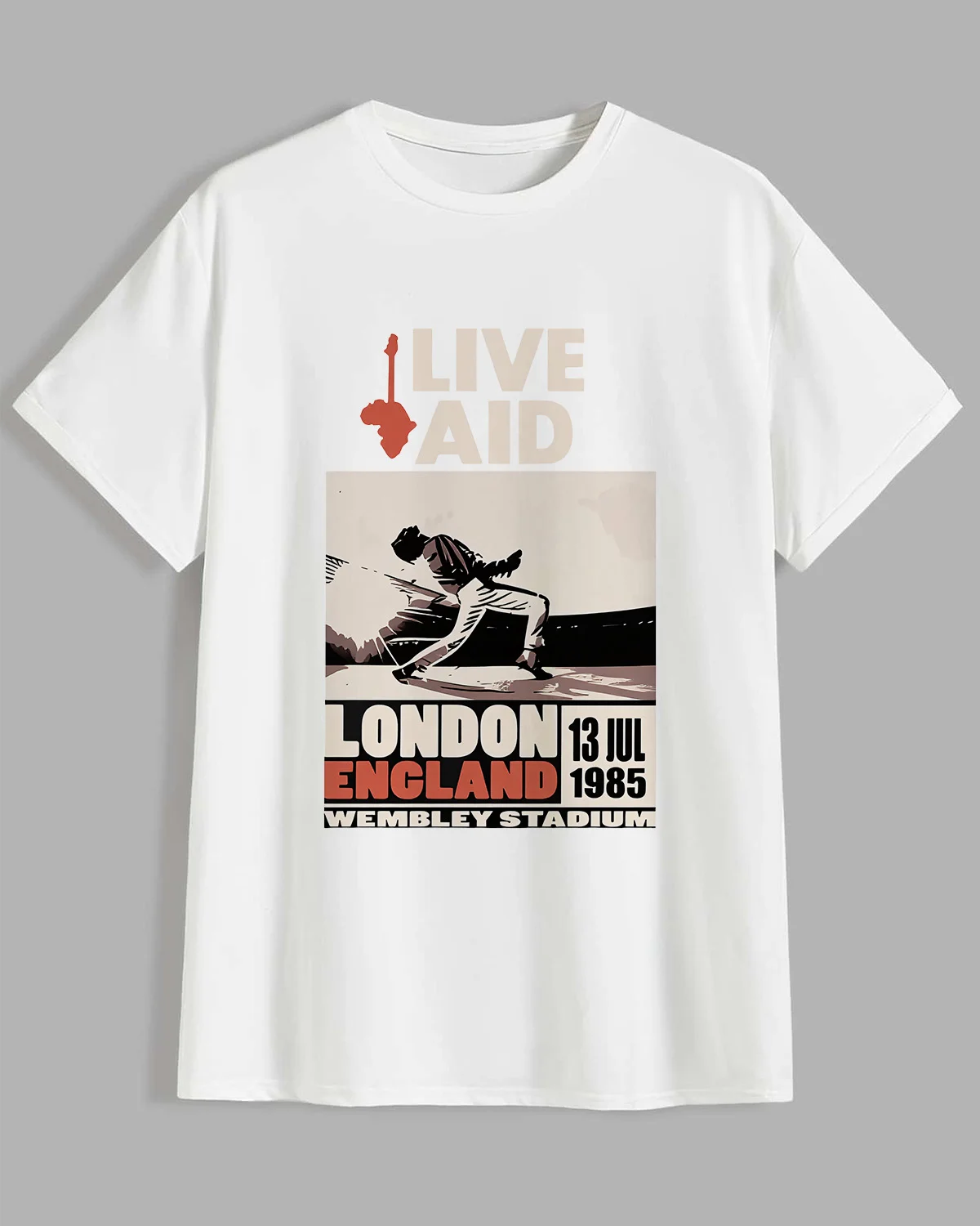 Live Aid London England 1985 Summer Cotton Graphic T Shirt - Vintage Retro, Short Sleeve, Soft Fabric, Comfortable Fit
