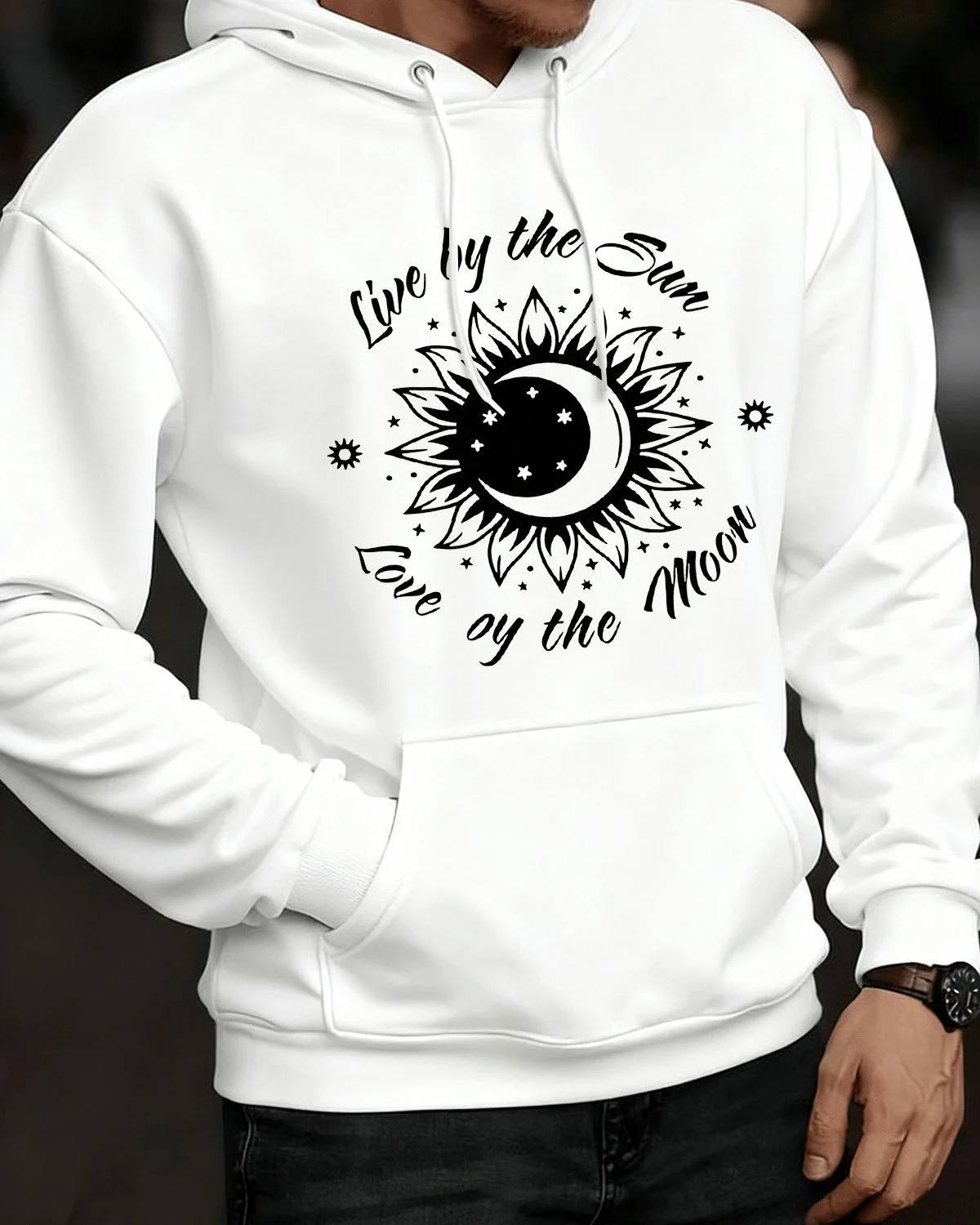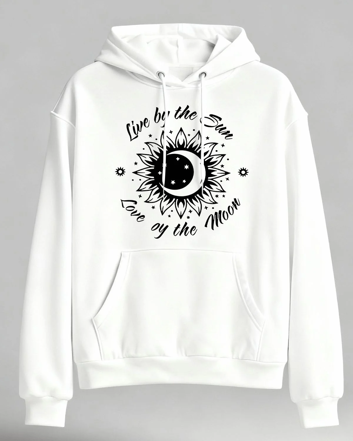 Live by the Sun Love by the Moon Cozy Graphic Hoodie for Men and Women - Vintage Boho, Long Sleeve, Soft Fabric, Comfortable Fit