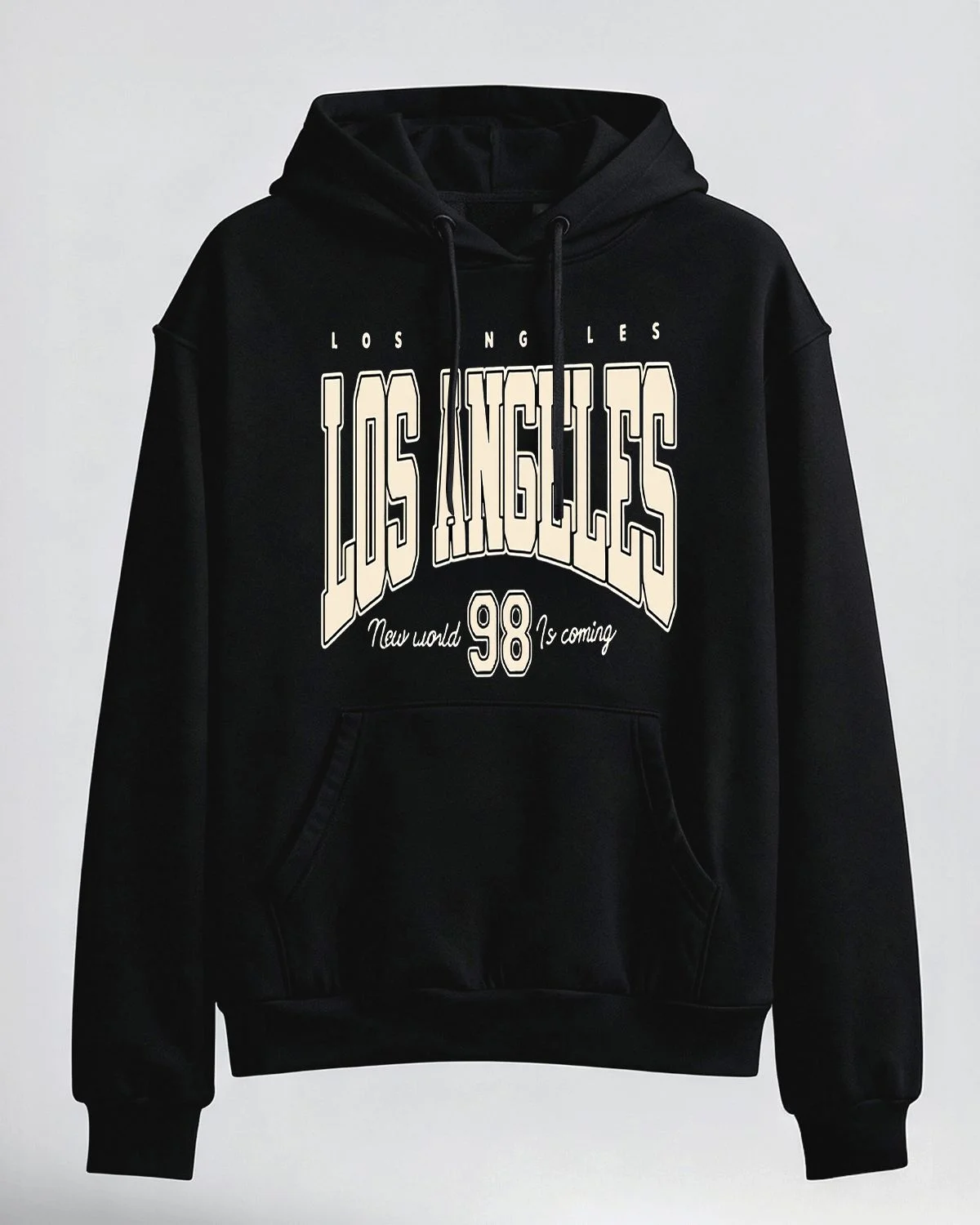 Los Angeles New World 98 Cozy Graphic Hoodie for Men and Women - Casual Vintage, Long Sleeve, Soft Fabric, Comfortable Fit