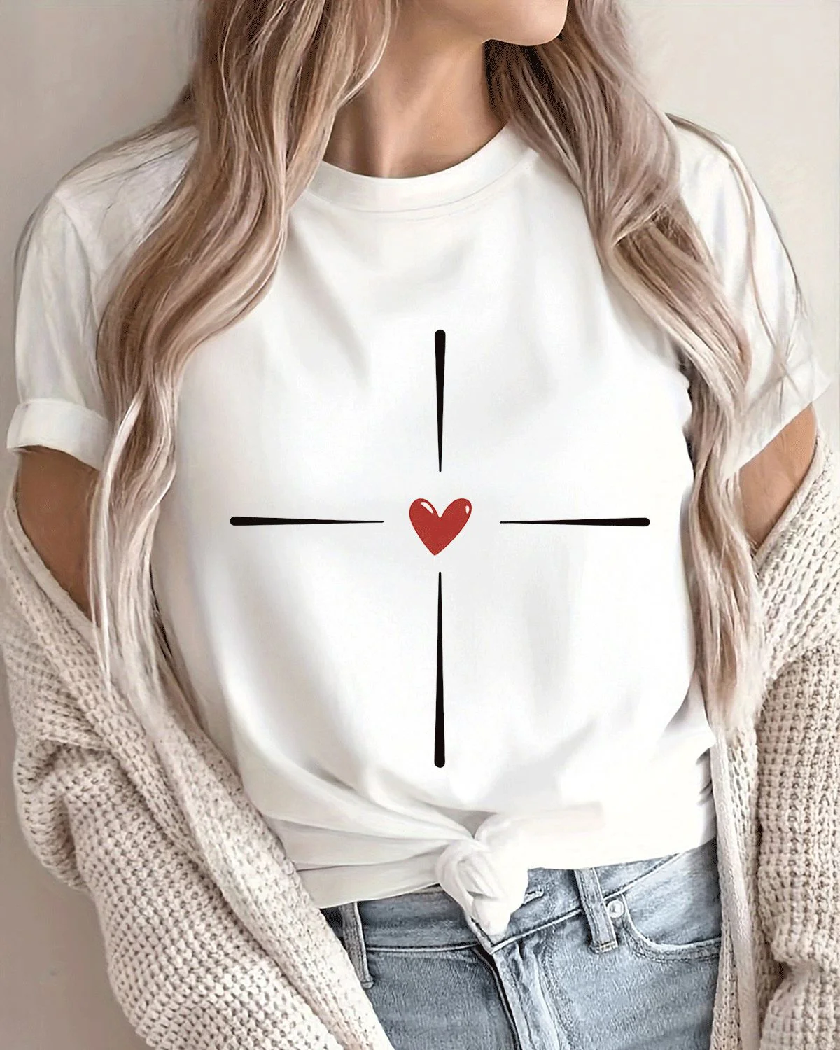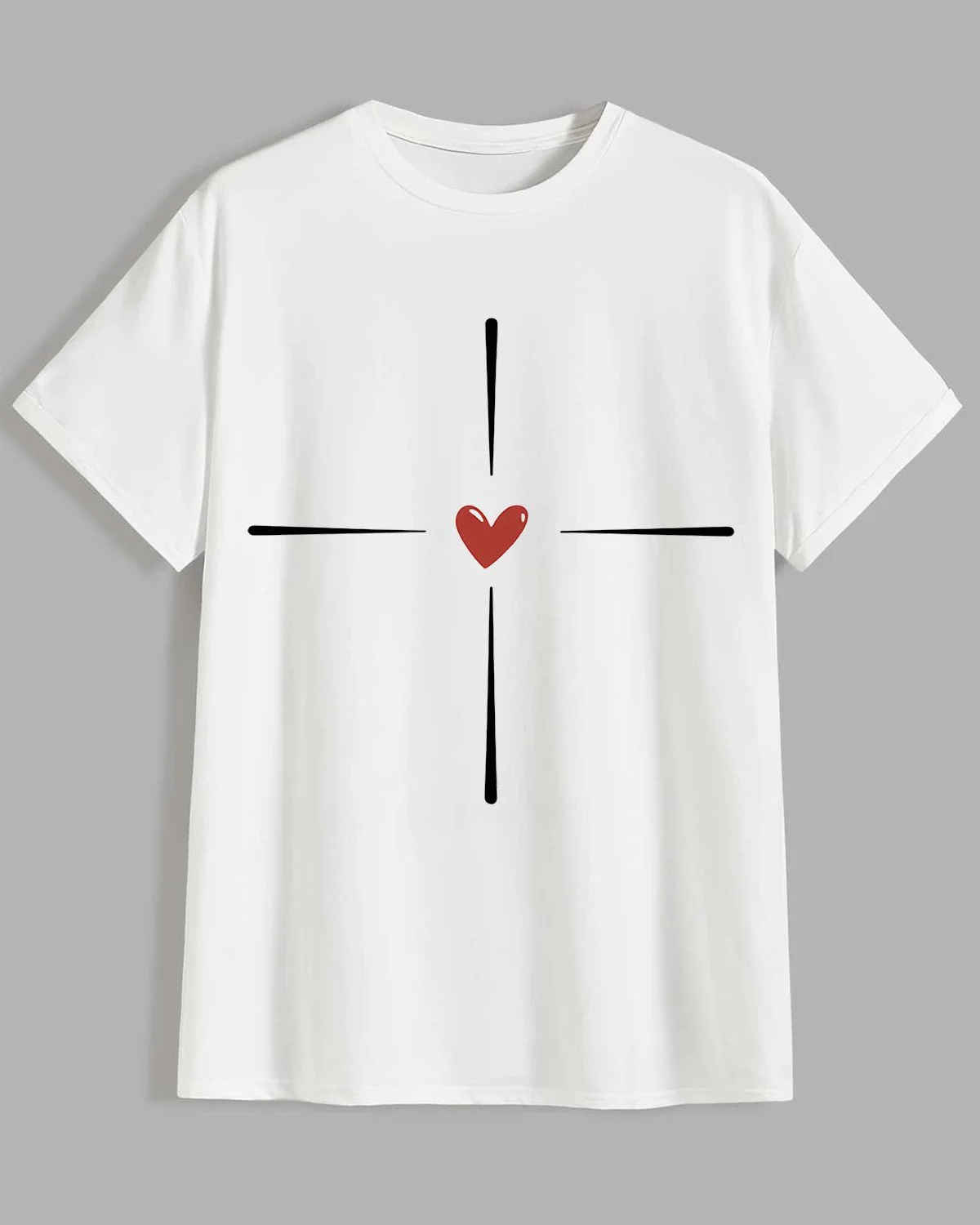 Love Centered Cross Summer Cotton Graphic T Shirt - Casual Vintage, Short Sleeve, Soft Fabric, Comfortable Fit