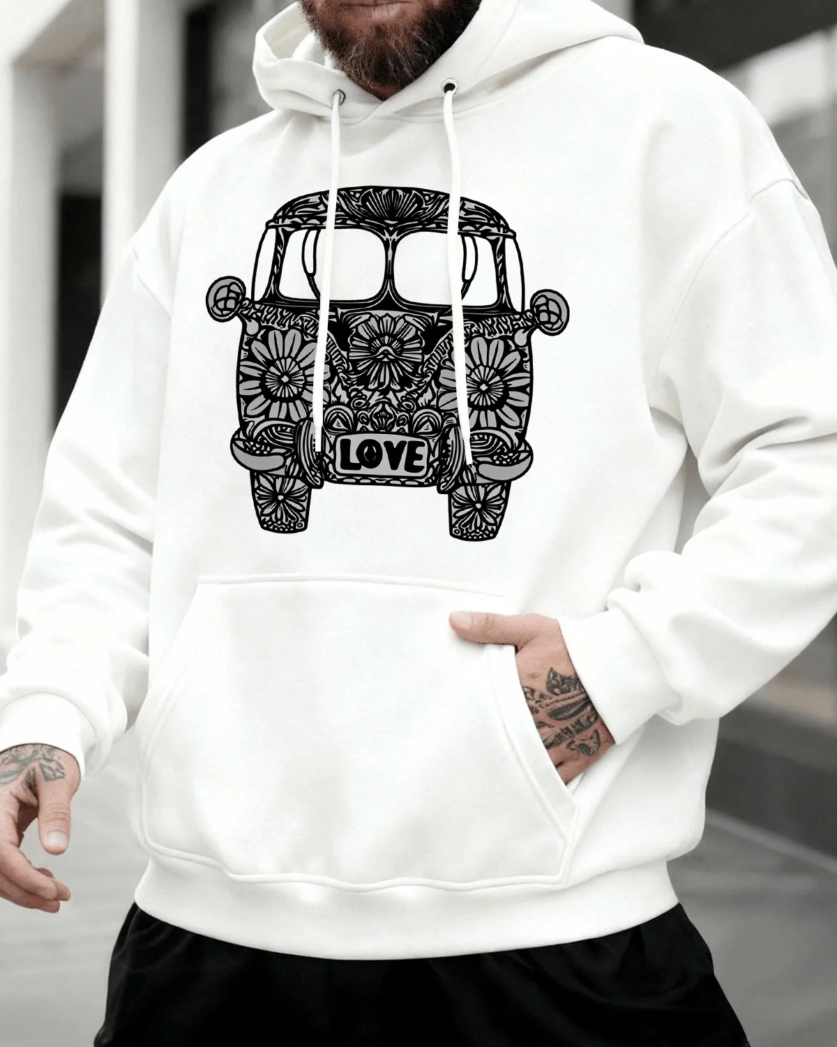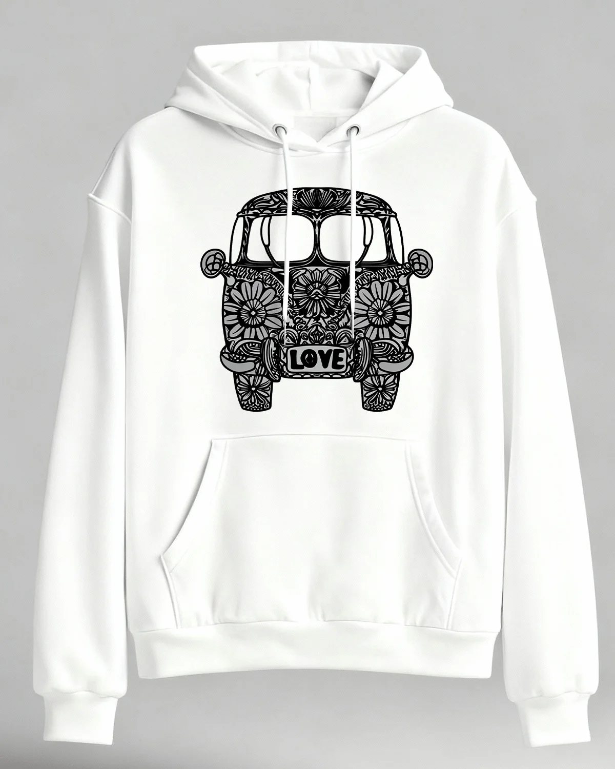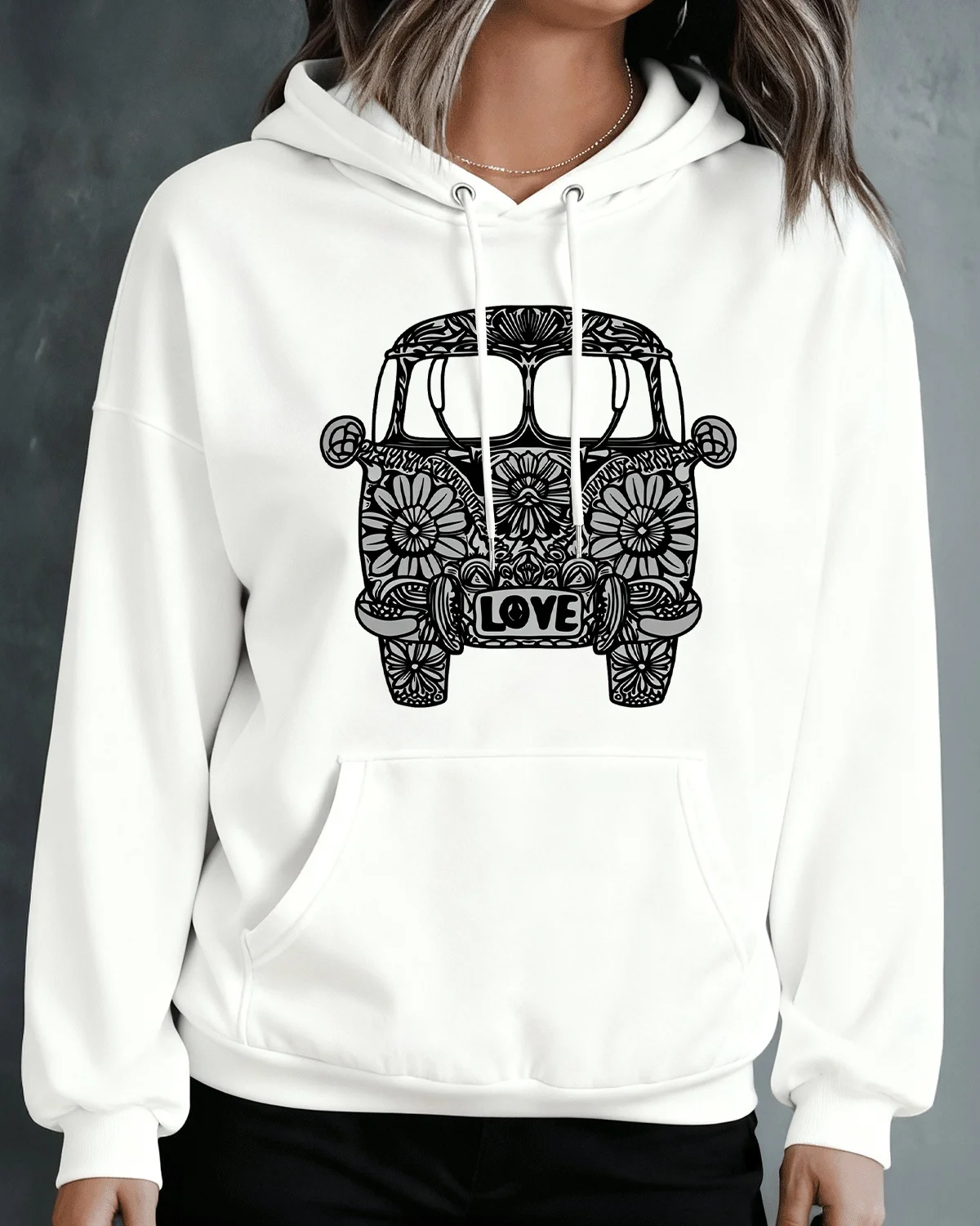 Love Floral Van Cozy Cotton Graphic Hoodie-Vintage Boho,Long Sleeves,Soft Fabric,Comfortable Fit