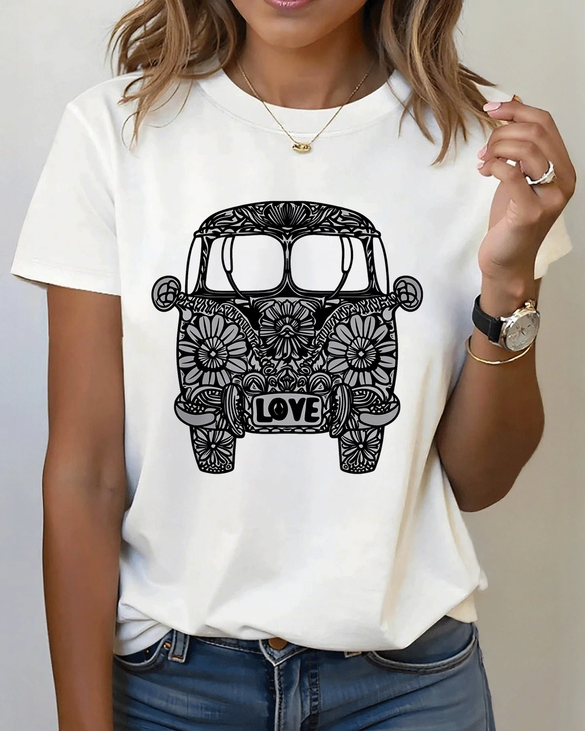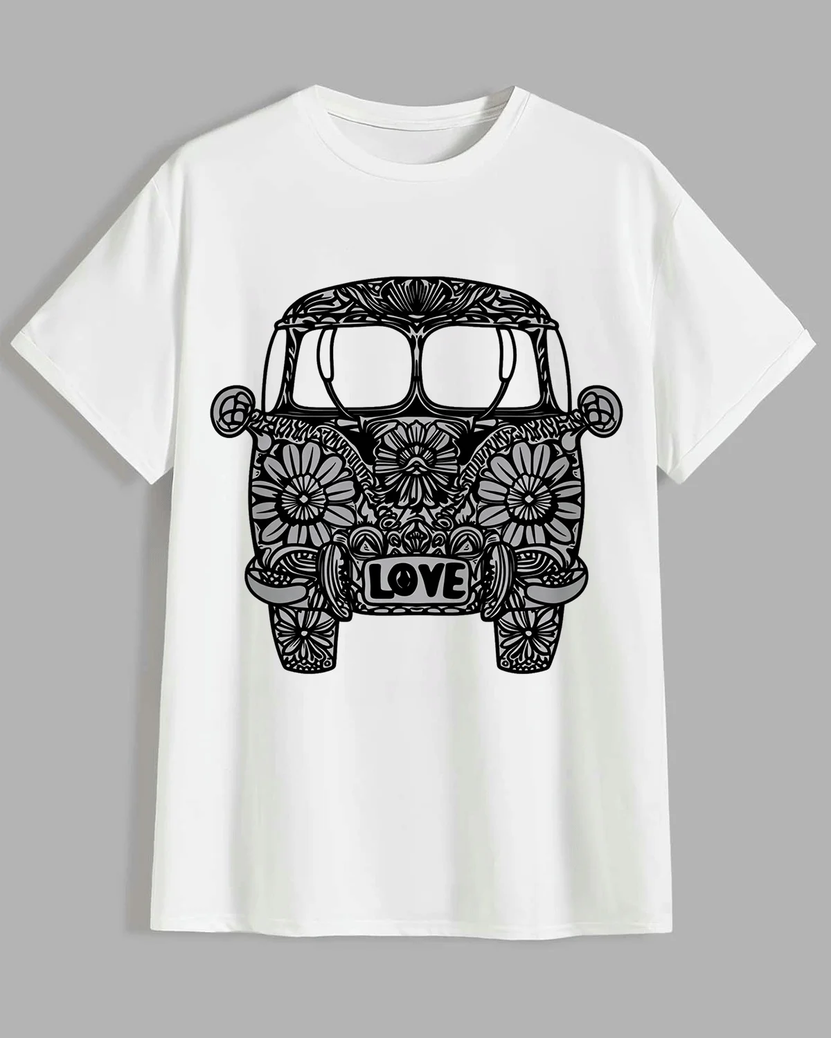 Love Floral Van Summer Cotton Graphic T Shirt-Vintage Boho,Short Sleeve,Soft Fabric,Comfortable Fit