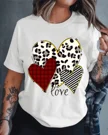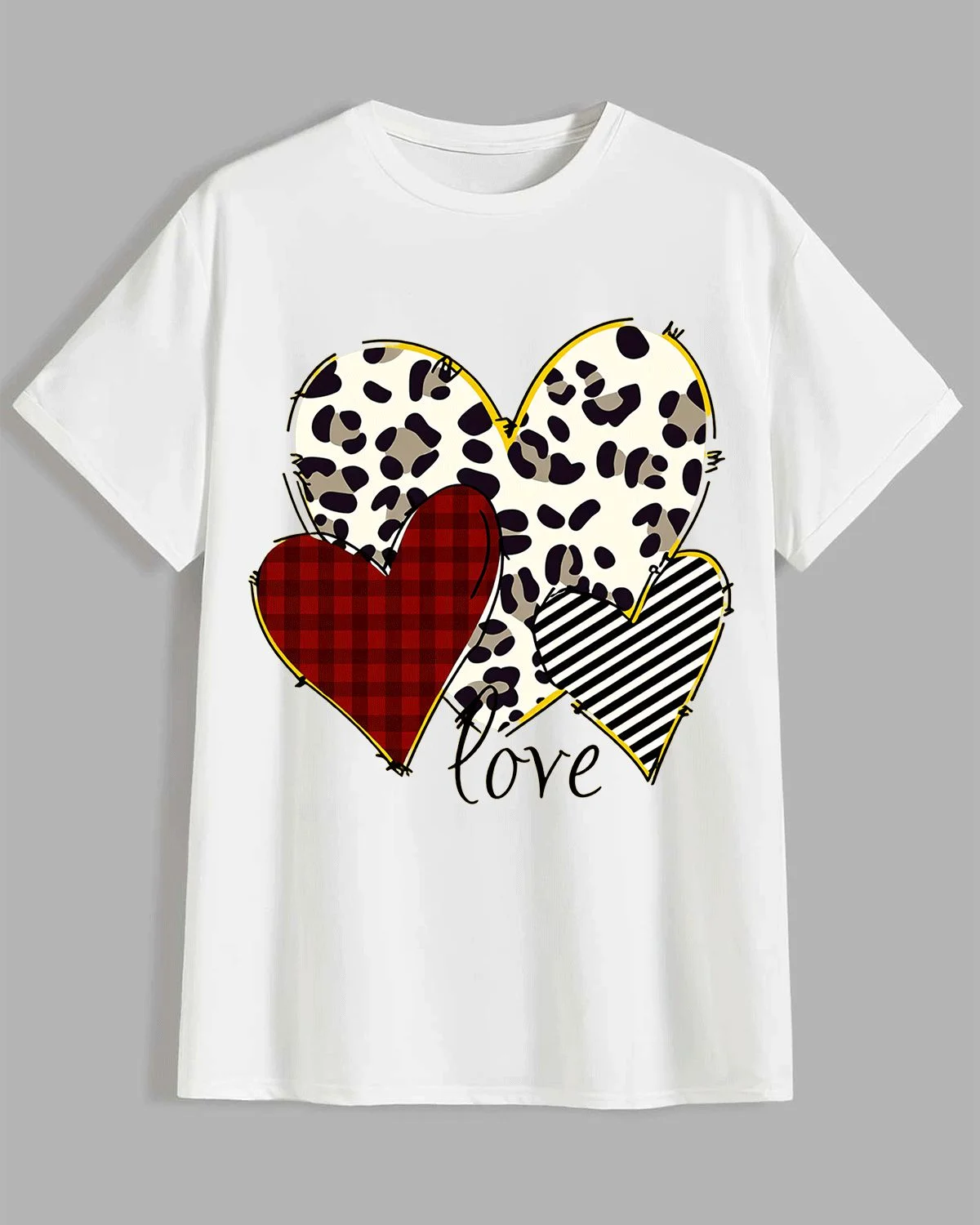 Love Leopard Plaid Striped Hearts Summer Cotton Graphic T Shirt - Casual Chic, Short Sleeve, Soft Fabric, Comfortable Fit