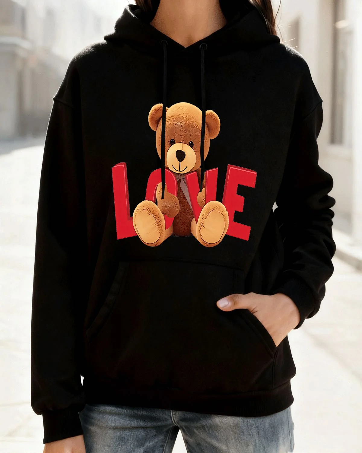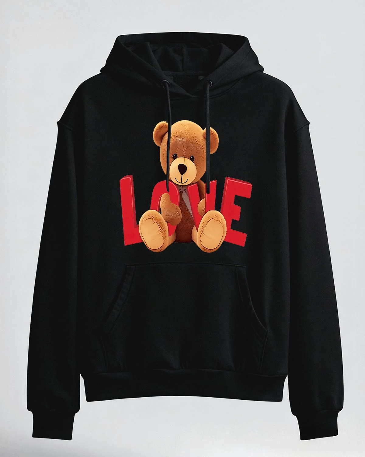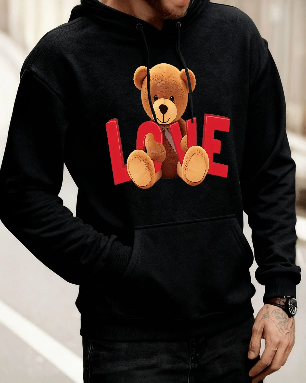 Love Teddy Bear Cozy Graphic Hoodie for Men and Women - Casual Cute, Long Sleeve, Soft Fabric, Comfortable Fit