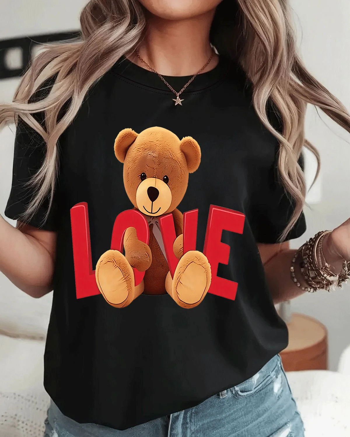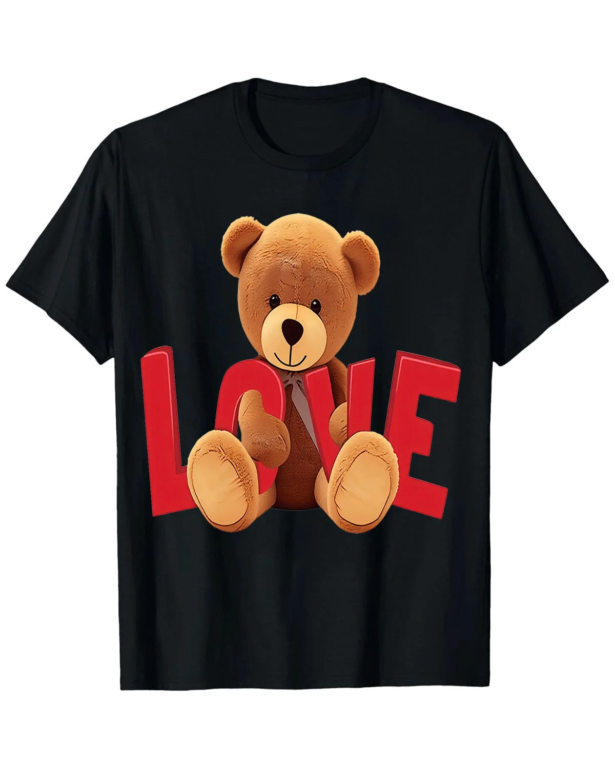 Love Teddy Bear Summer Cotton Graphic T Shirt - Casual Cute, Short Sleeve, Soft Fabric, Comfortable Fit