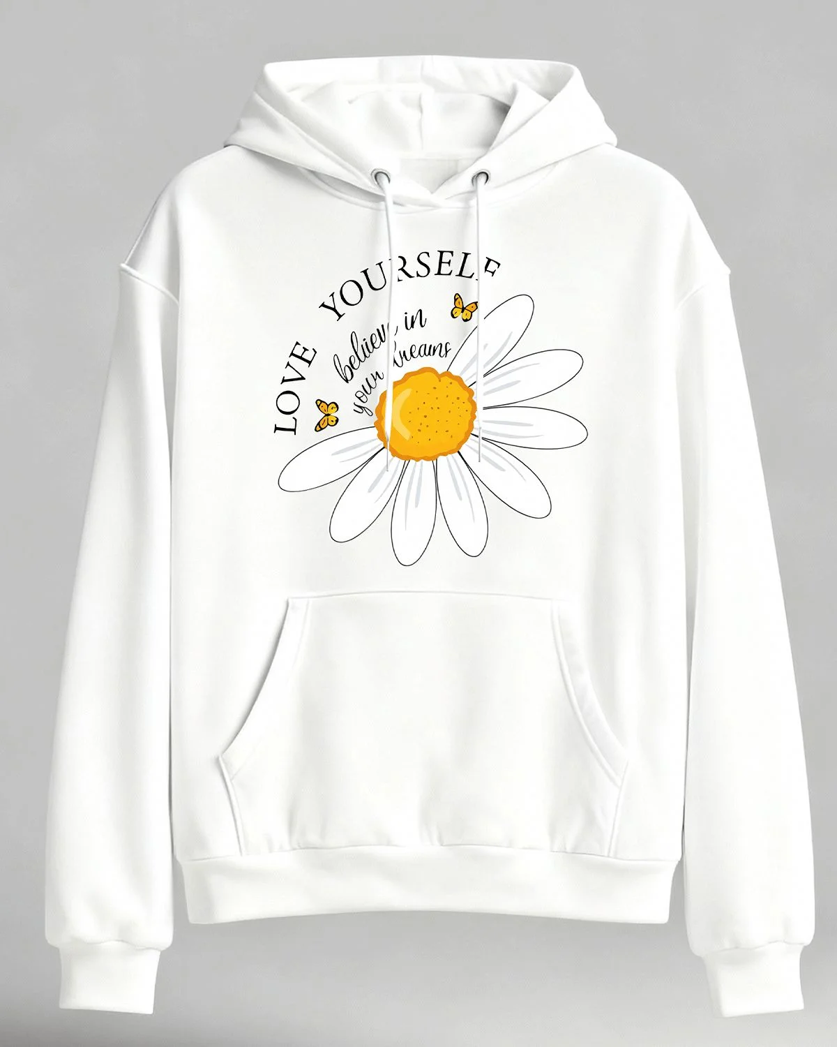 Love Yourself Believe in Your Dreams Daisy Cozy Graphic Hoodie for Men and Women - Casual Artistic, Long Sleeve, Soft Fabric, Comfortable Fit