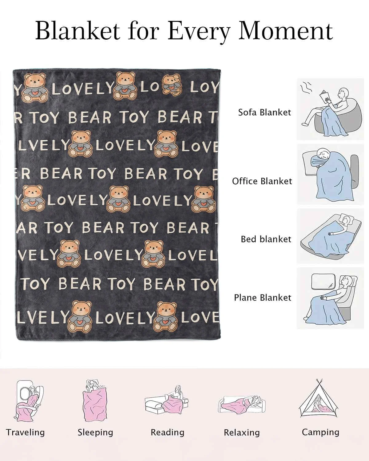 Lovely Toy Bear Love Gift Cozy Flannel Blanket-Cute Classic,Plush,Warm,Super Soft,For Bed,Living Room Use