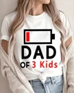 Low Battery Dad of 3 Kids Summer Cotton Graphic T Shirt - Funny Casual, Short Sleeve, Soft Fabric, Comfortable Fit