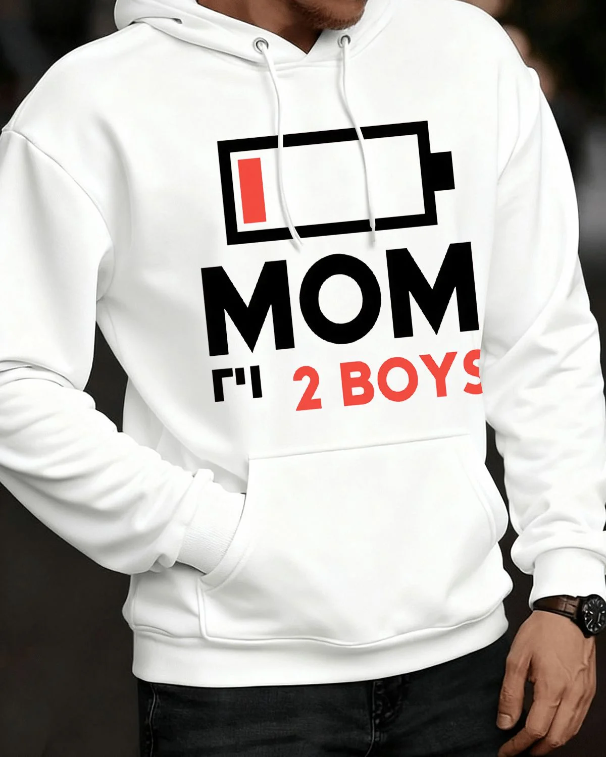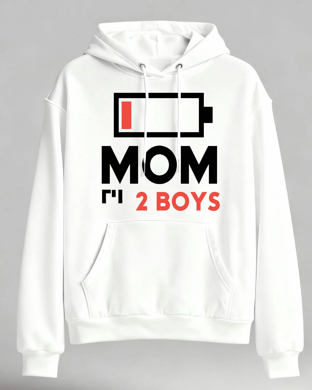 Low Battery Mom of 2 Boys Cozy Graphic Hoodie for Men and Women - Funny Casual, Long Sleeve, Soft Fabric, Comfortable Fit