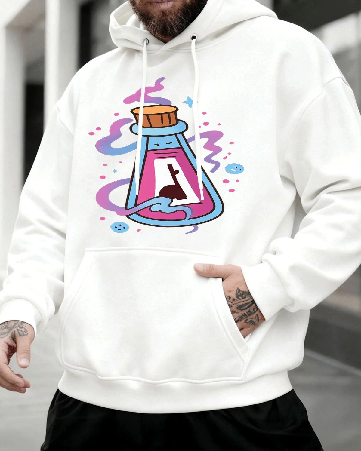 Angry Christmas Cat with Santa Hat and Lights Summer Cozy Graphic Hoodie - Funny Vintage, Long Sleeve, Soft Fabric, Comfortable Fit