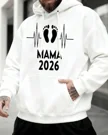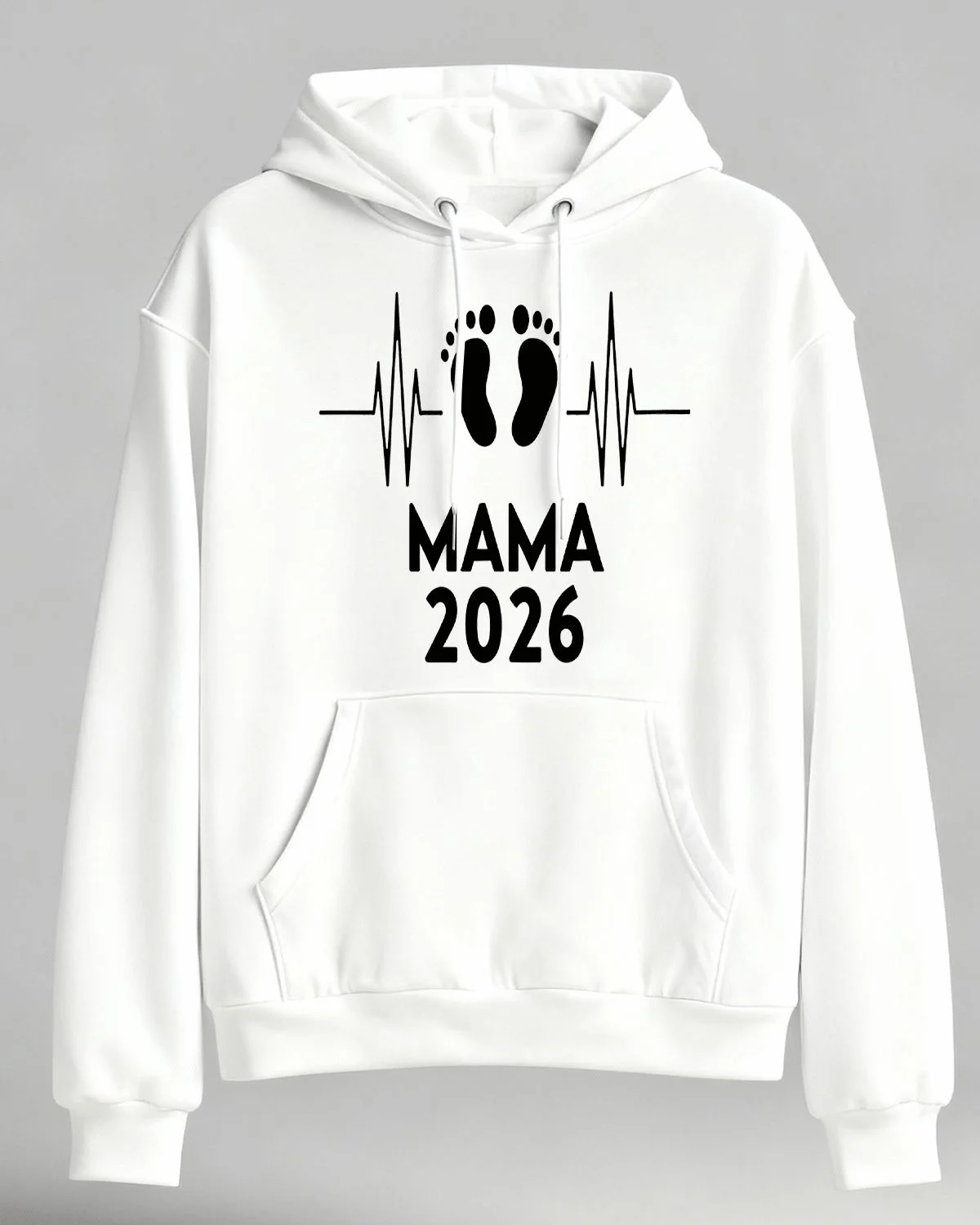 Mama 2026 Baby Feet Heartbeat Mom Cozy Graphic Hoodie for Men and Women - Casual Modern, Long Sleeve, Soft Fabric, Comfortable Fit