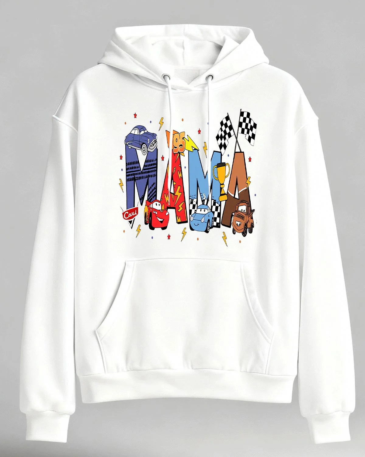 Mama Cars Racing Mom Cozy Graphic Hoodie for Men and Women - Casual Cool, Long Sleeve, Soft Fabric, Comfortable Fit