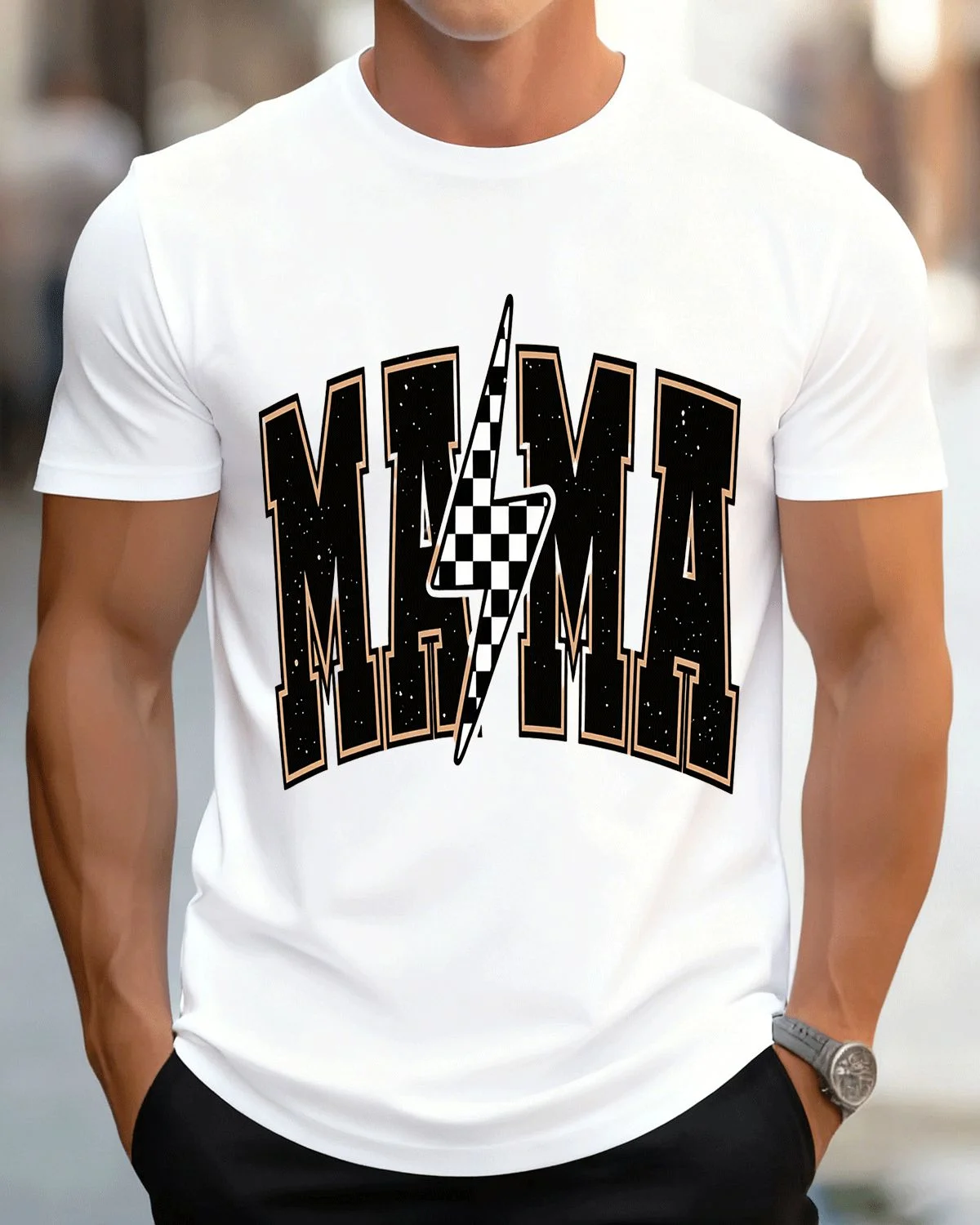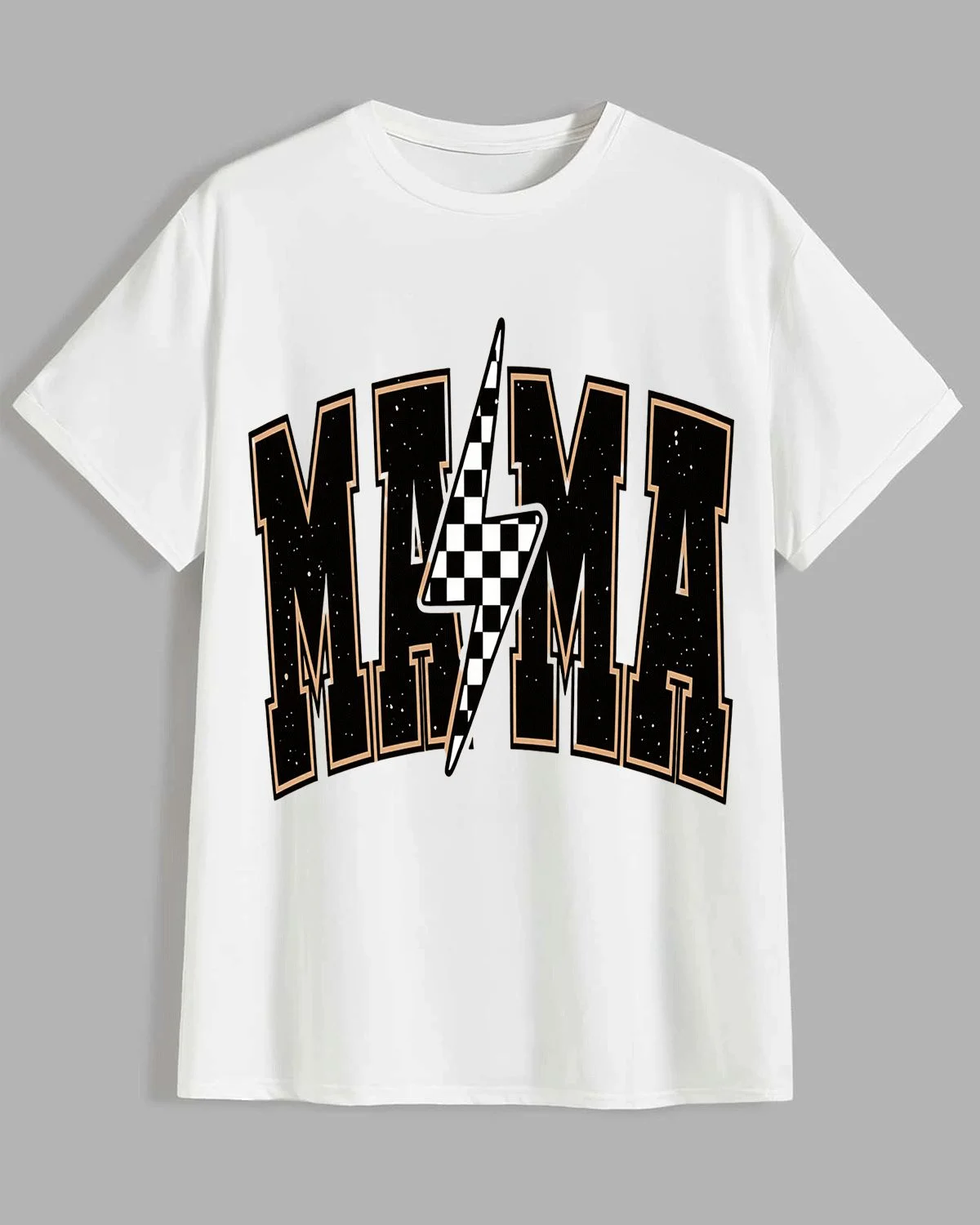 Mama Lightning Bolt Mom Summer Cotton Graphic T Shirt - Casual Retro, Short Sleeve, Soft Fabric, Comfortable Fit