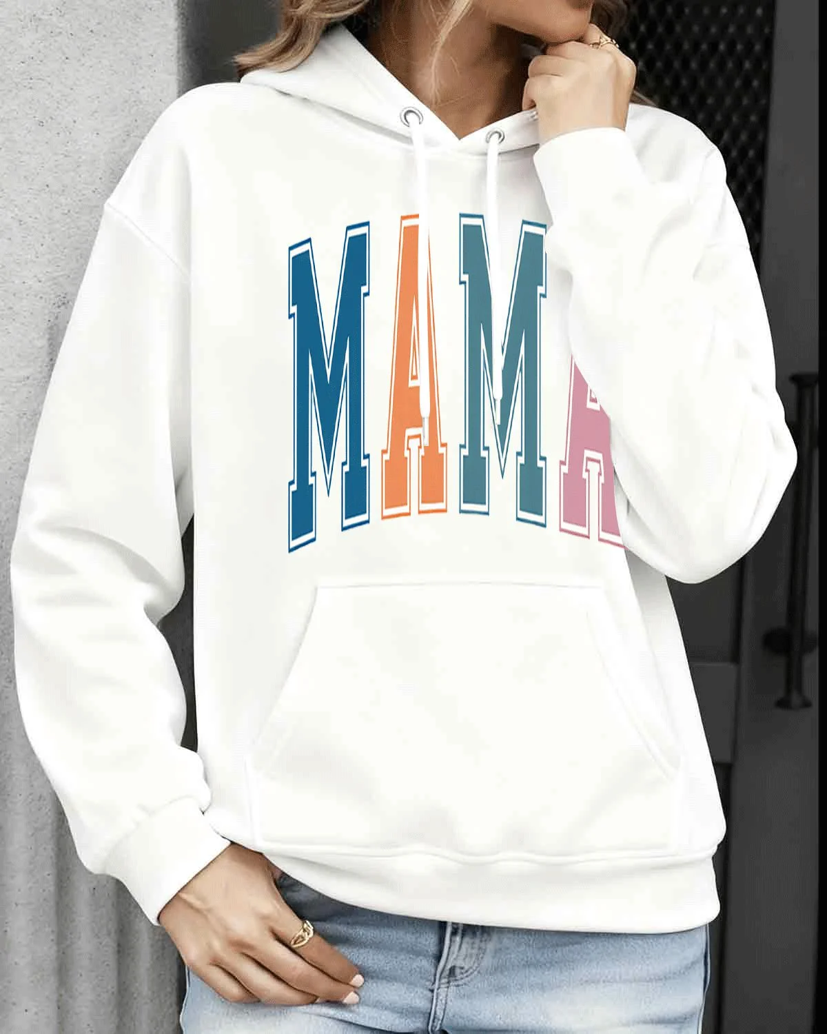 Mama Mom Color Block Cozy Graphic Hoodie for Men and Women - Casual Vintage, Long Sleeve, Soft Fabric, Comfortable Fit