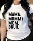 Mama Mommy Mom Bruh Summer Cotton Graphic T Shirt - Funny Casual, Short Sleeve, Soft Fabric, Comfortable Fit