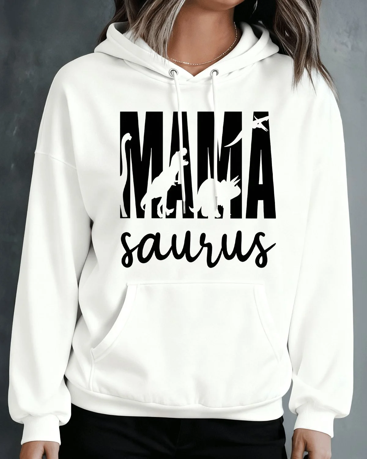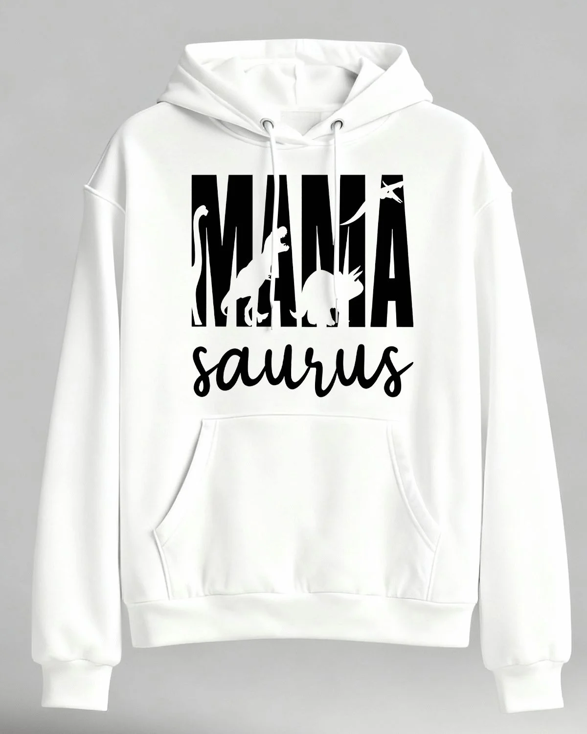 Mamasaurus Mom Dinosaur Cozy Graphic Hoodie for Men and Women - Casual Funny, Long Sleeve, Soft Fabric, Comfortable Fit