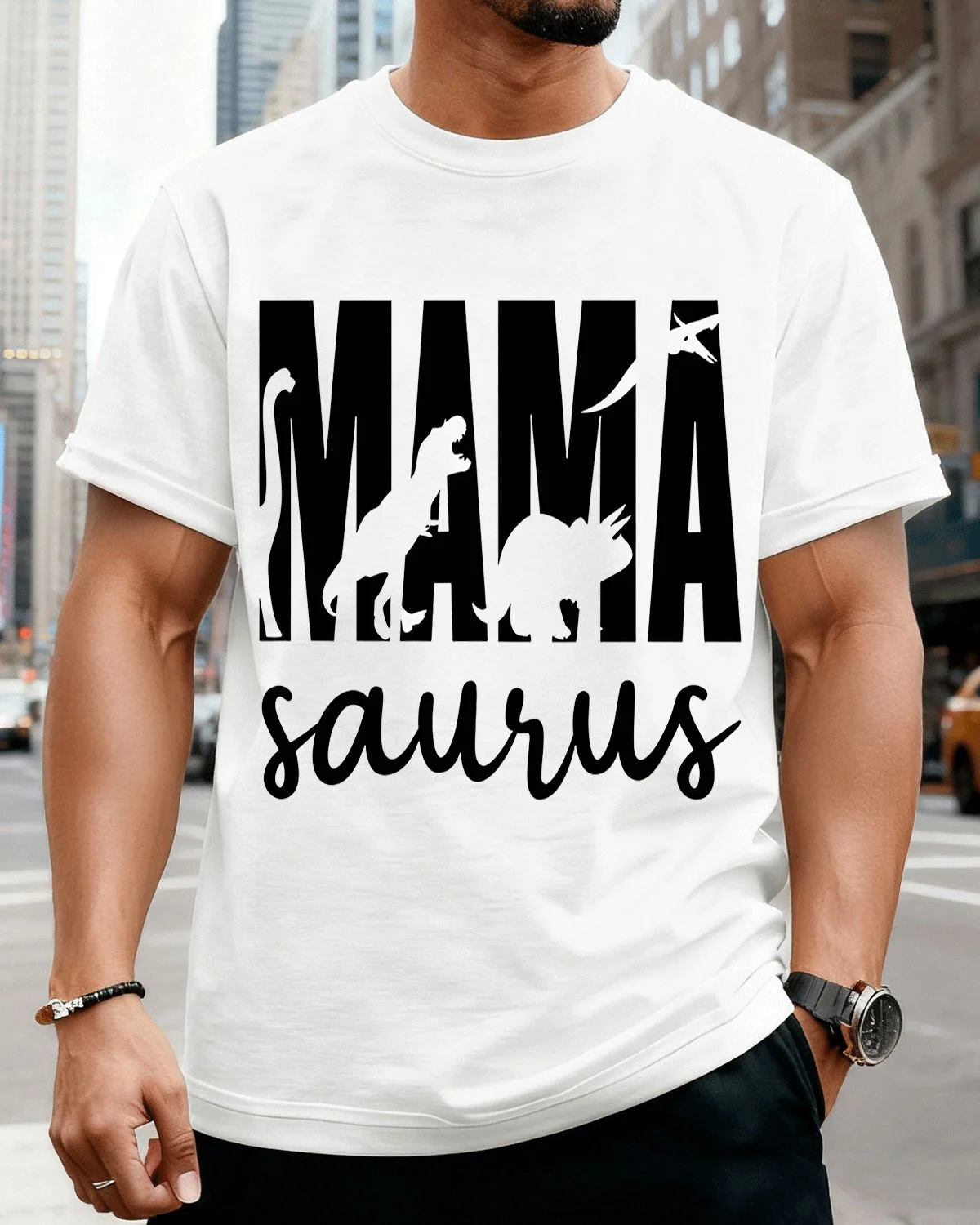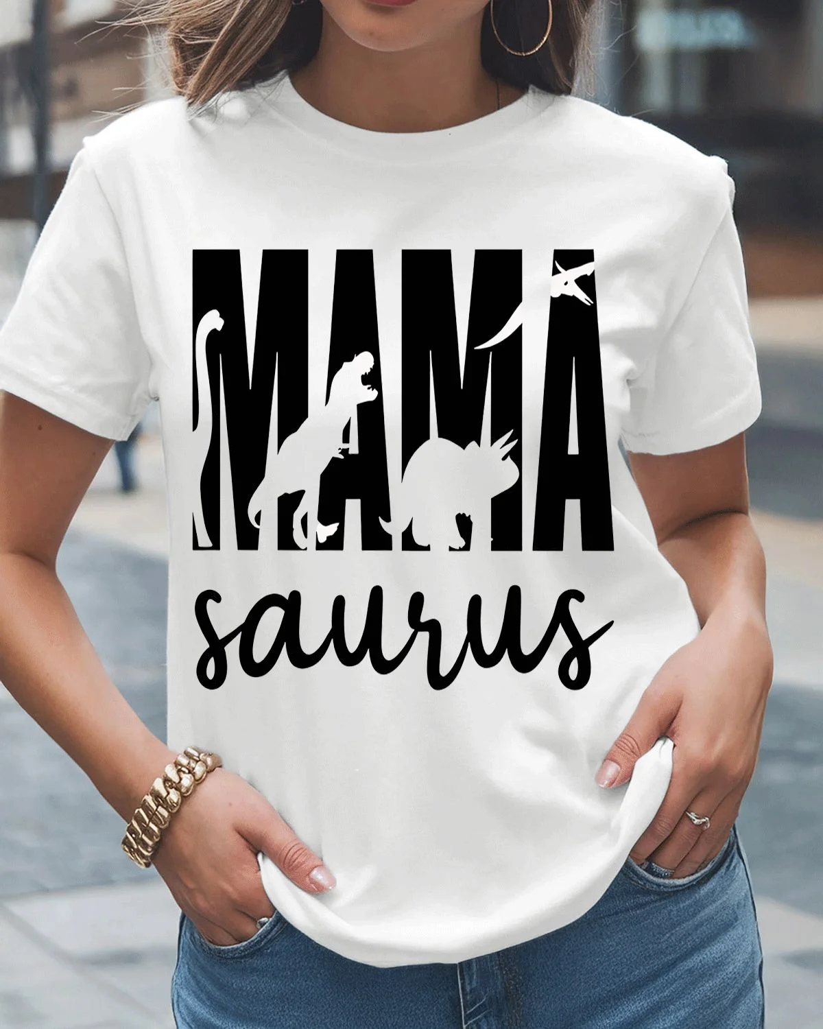 Mamasaurus Mom Dinosaur Summer Cotton Graphic T Shirt - Casual Funny, Short Sleeve, Soft Fabric, Comfortable Fit