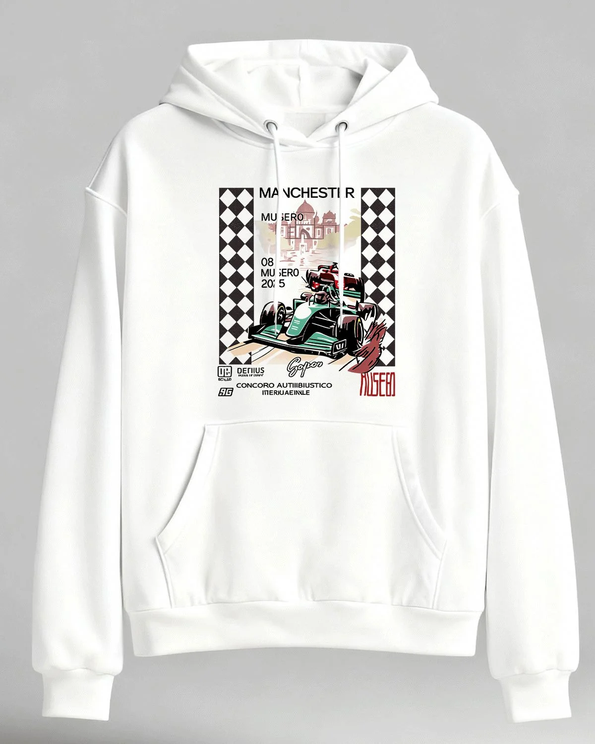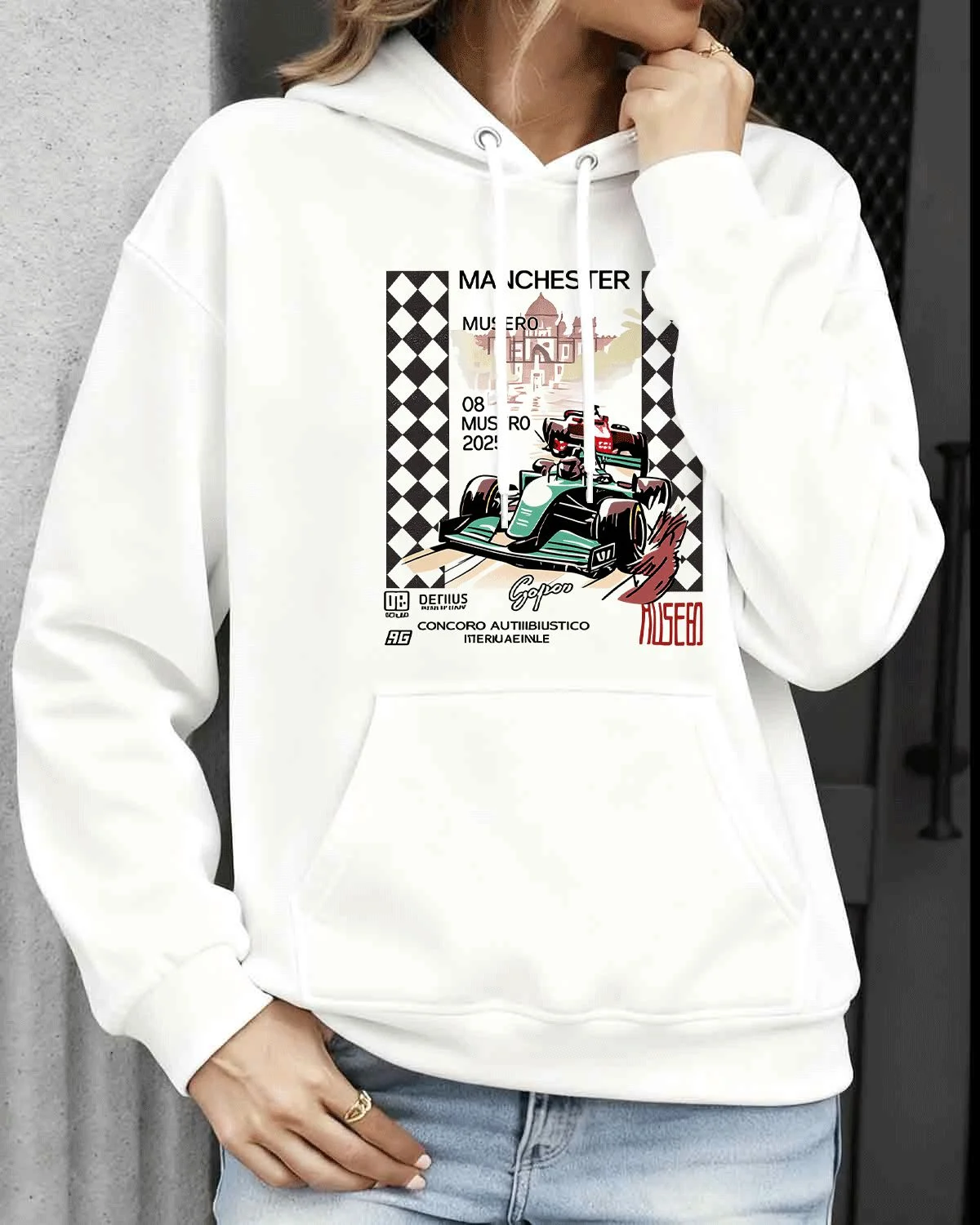 Manchester Grand Prix Racing Cozy Cotton Graphic Hoodie with Pocket-Sporty Retro,Long Sleeve,Soft Fabric,Comfortable Fit
