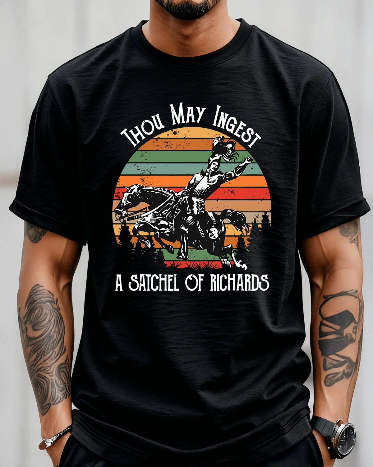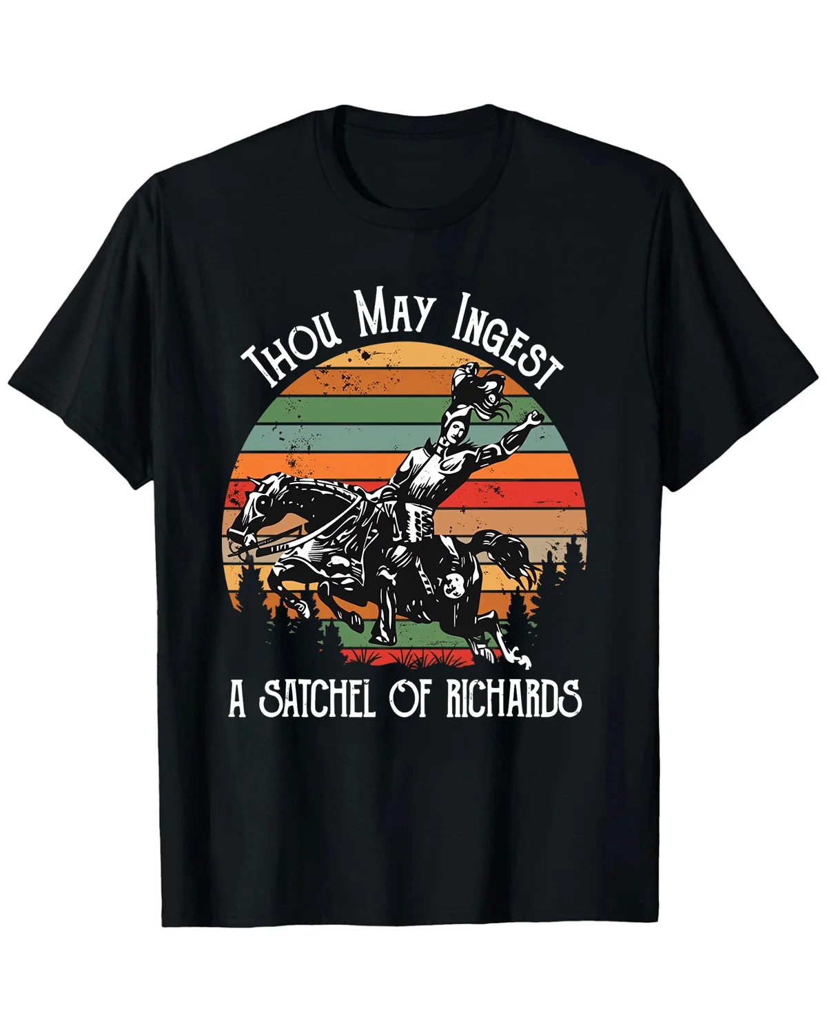 Medieval Knight on Horseback Summer Cotton Graphic T Shirt-Vintage Retro,Short Sleeve,Soft Fabric,Comfortable Fit
