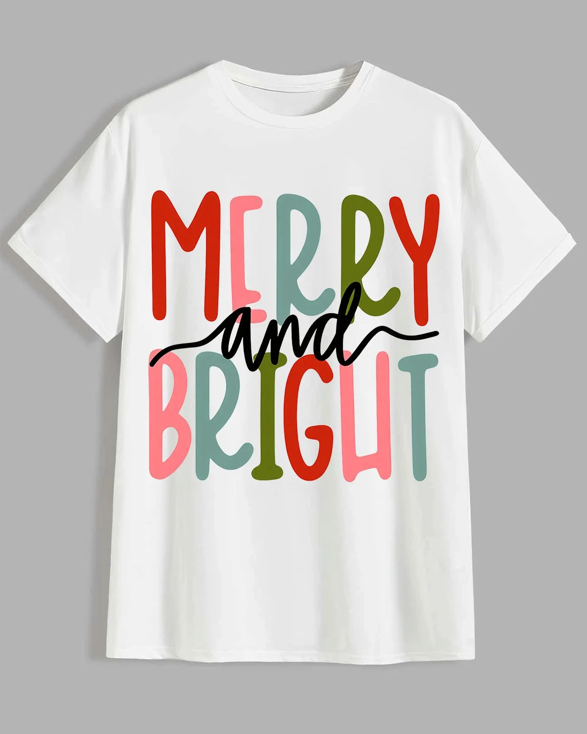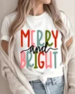 Merry and Bright Christmas Summer Cotton Graphic T Shirt - Casual Vintage, Short Sleeve, Soft Fabric, Comfortable Fit