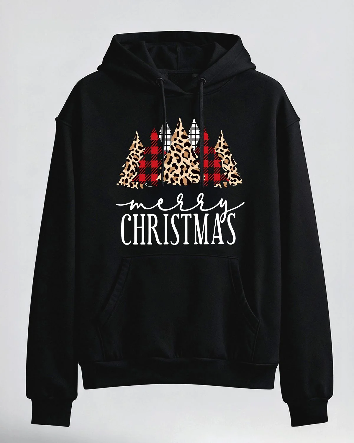 Merry Christmas Plaid and Leopard Trees Cozy Graphic Hoodie for Men and Women - Casual Vintage, Long Sleeve, Soft Fabric, Comfortable Fit