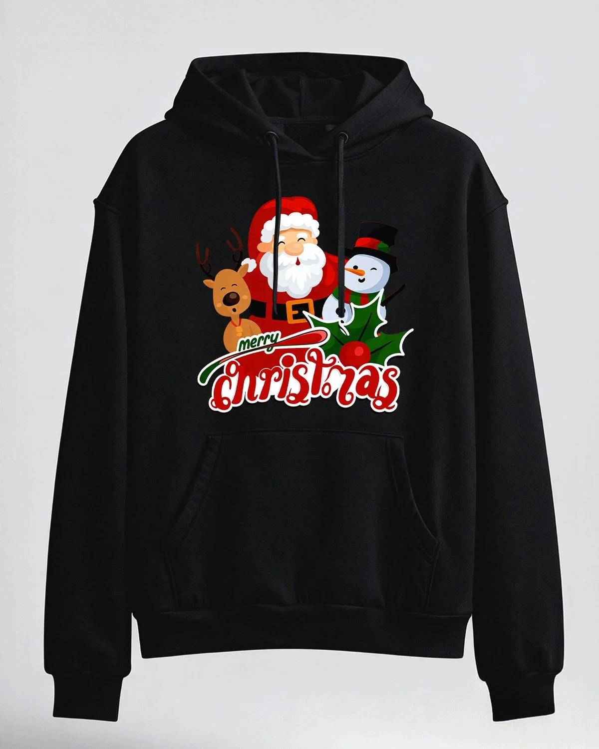 Merry Christmas Santa Reindeer Snowman Cozy Graphic Hoodie for Men and Women - Casual Vintage, Long Sleeve, Soft Fabric, Comfortable Fit