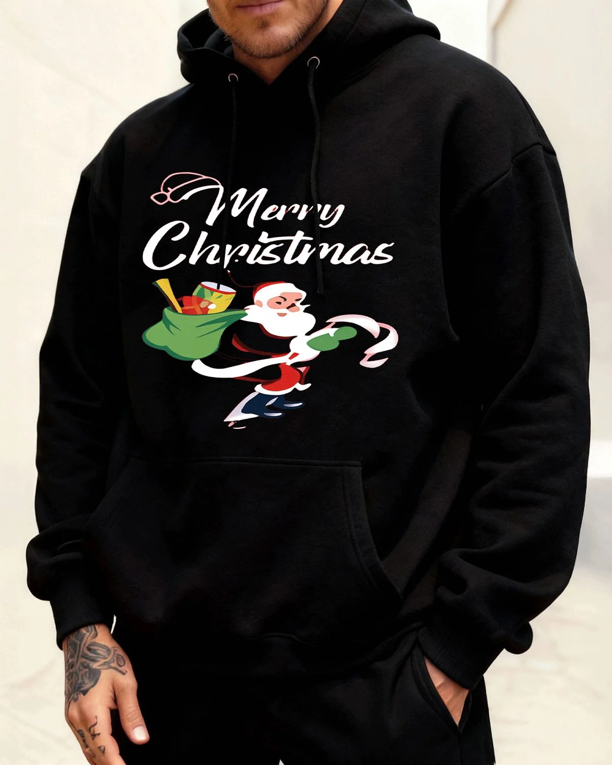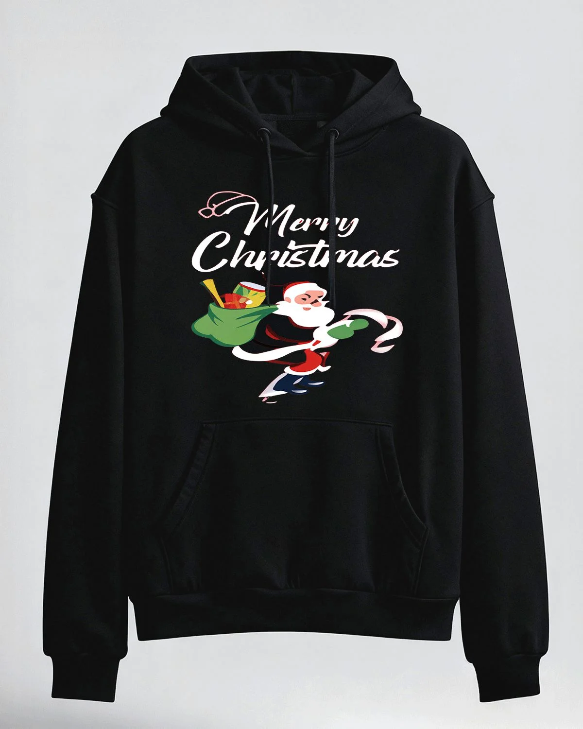 Merry Christmas Santa with Gift Bag Cozy Graphic Hoodie for Men and Women - Casual Vintage, Long Sleeve, Soft Fabric, Comfortable Fit