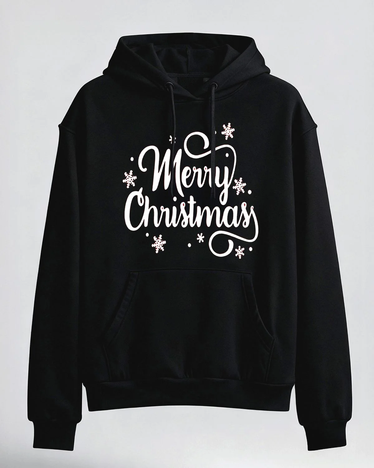 Merry Christmas Snowflake Script Cozy Graphic Hoodie for Men and Women - Casual Vintage, Long Sleeve, Soft Fabric, Comfortable Fit