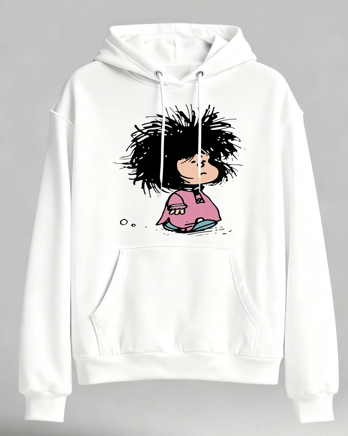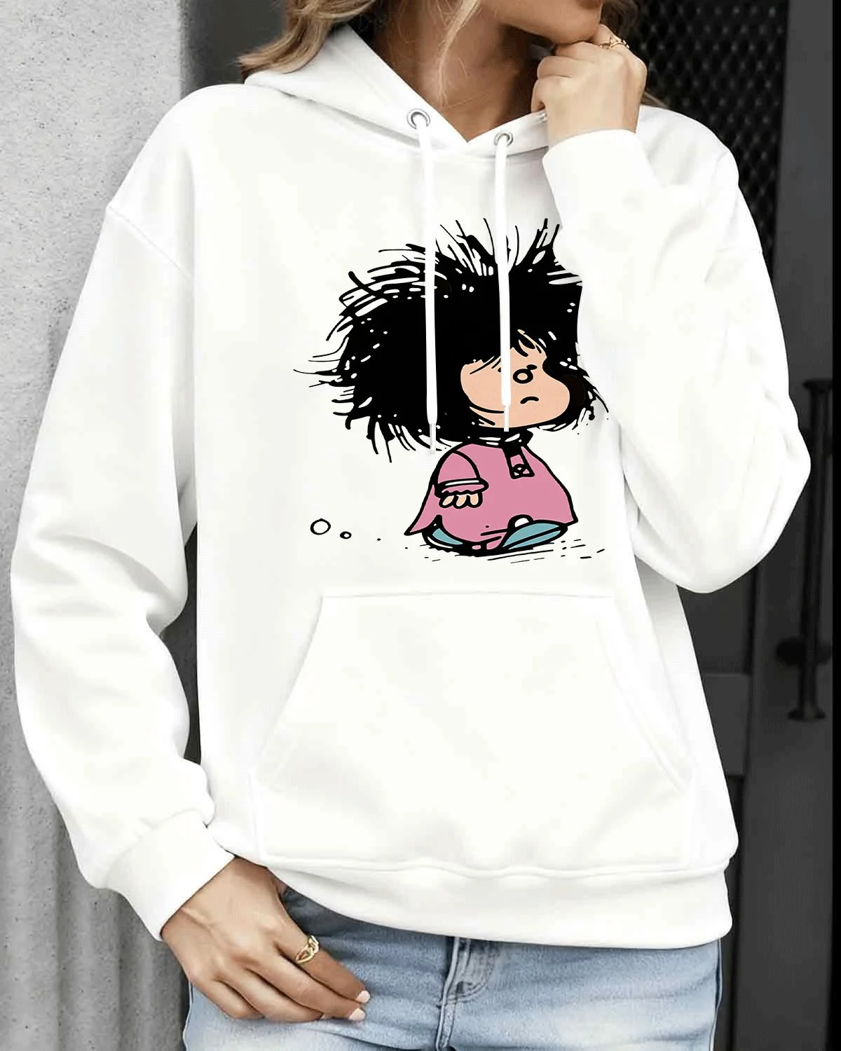 Messy Hair Cartoon Girl Cozy Graphic Hoodie for Men and Women - Casual Funny, Long Sleeve, Soft Fabric, Comfortable Fit