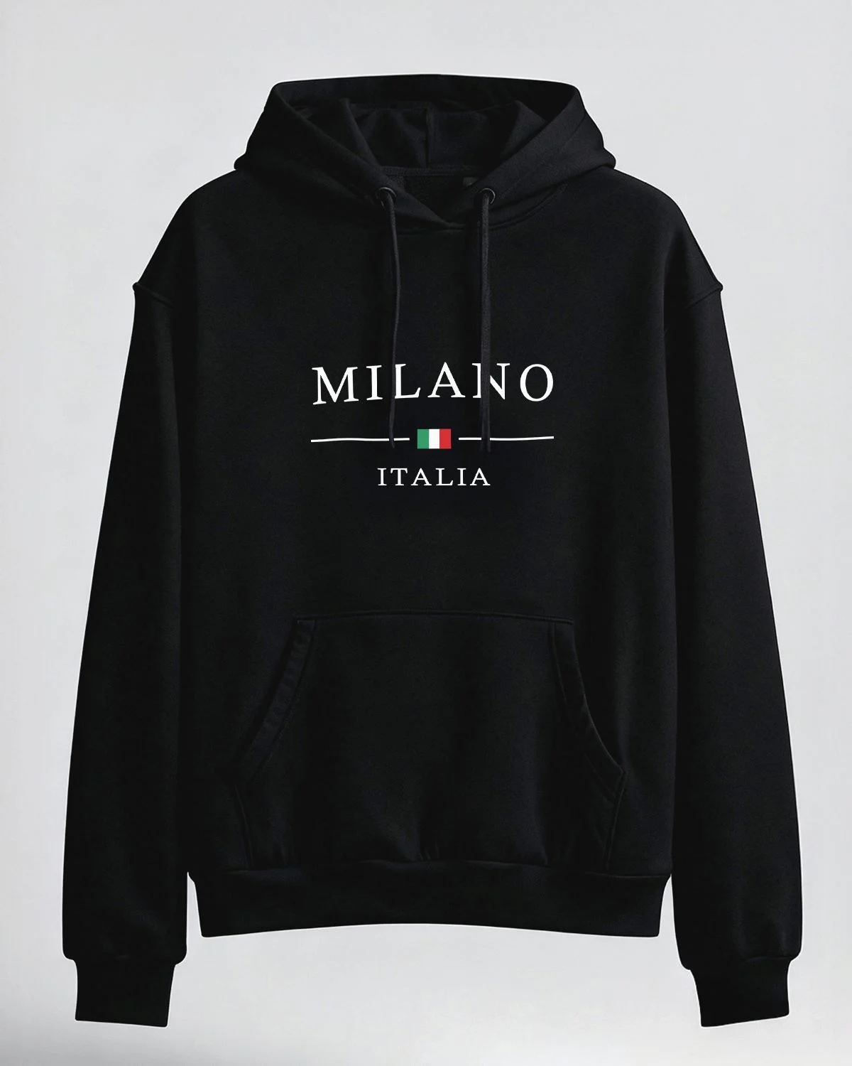 Milano Italia Flag Cozy Cotton Graphic Hoodie with Pocket-Vintage Classic,Long Sleeve,Soft Fabric,Comfortable Fit