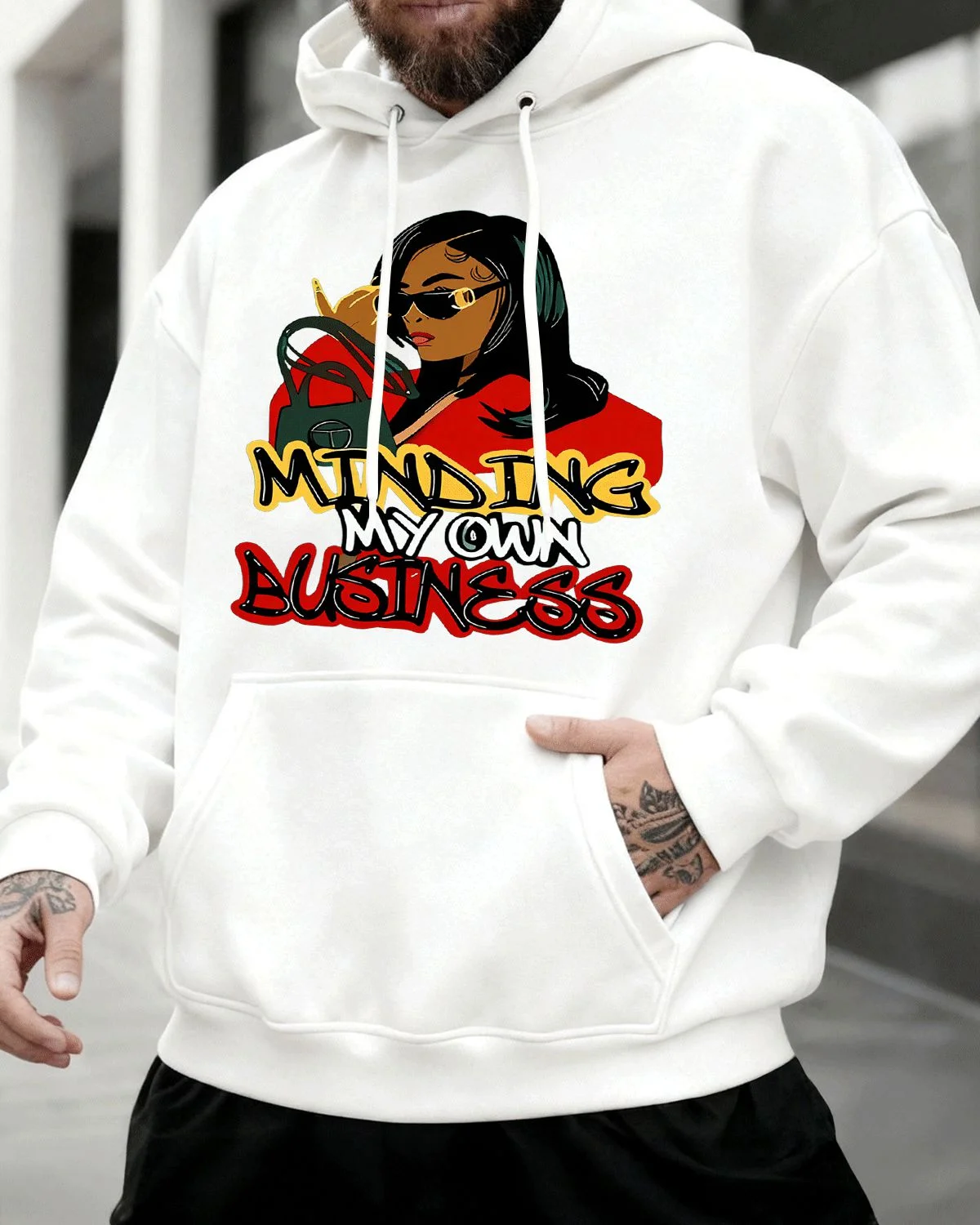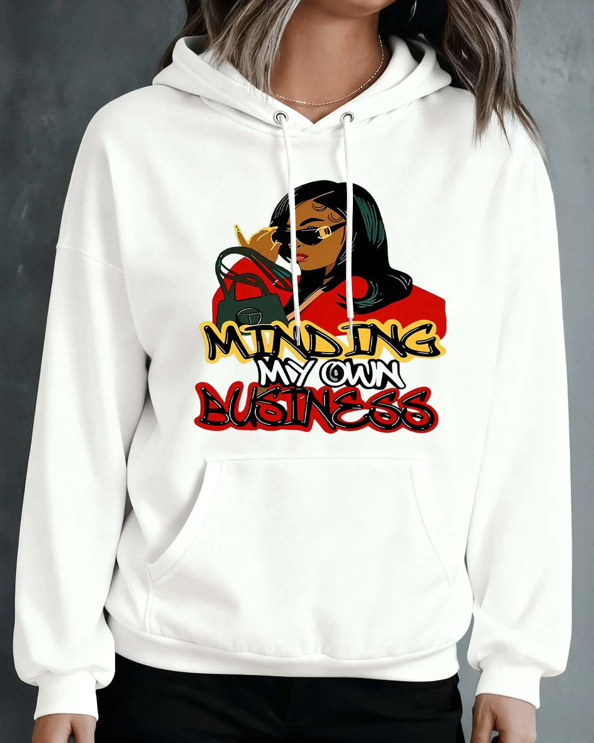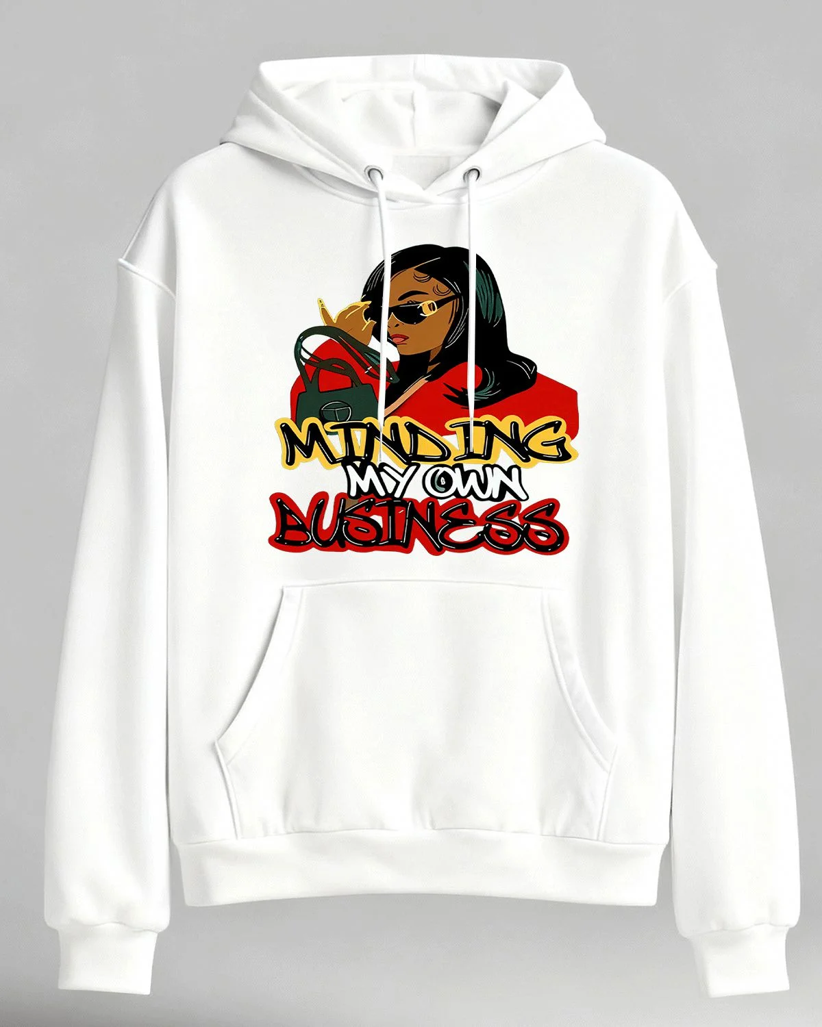 Minding My Own Business Cozy Graphic Hoodie for Men and Women - Casual Urban, Long Sleeve, Soft Fabric, Comfortable Fit