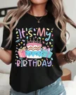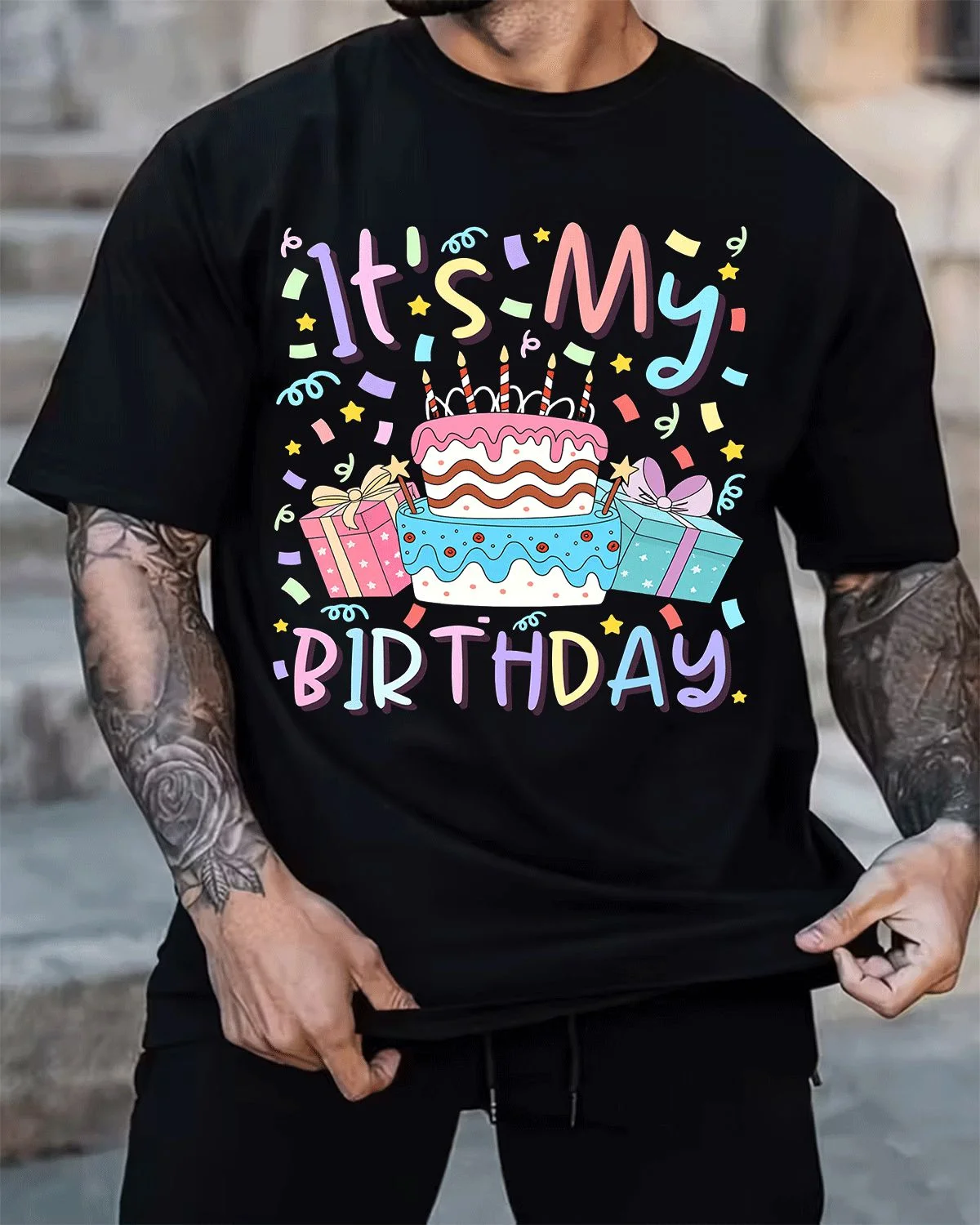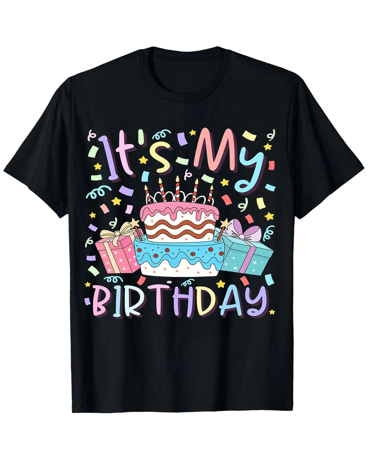 Mom Birthday Cake Celebration Summer Cotton Graphic T Shirt - Casual Fun, Short Sleeve, Soft Fabric, Comfortable Fit