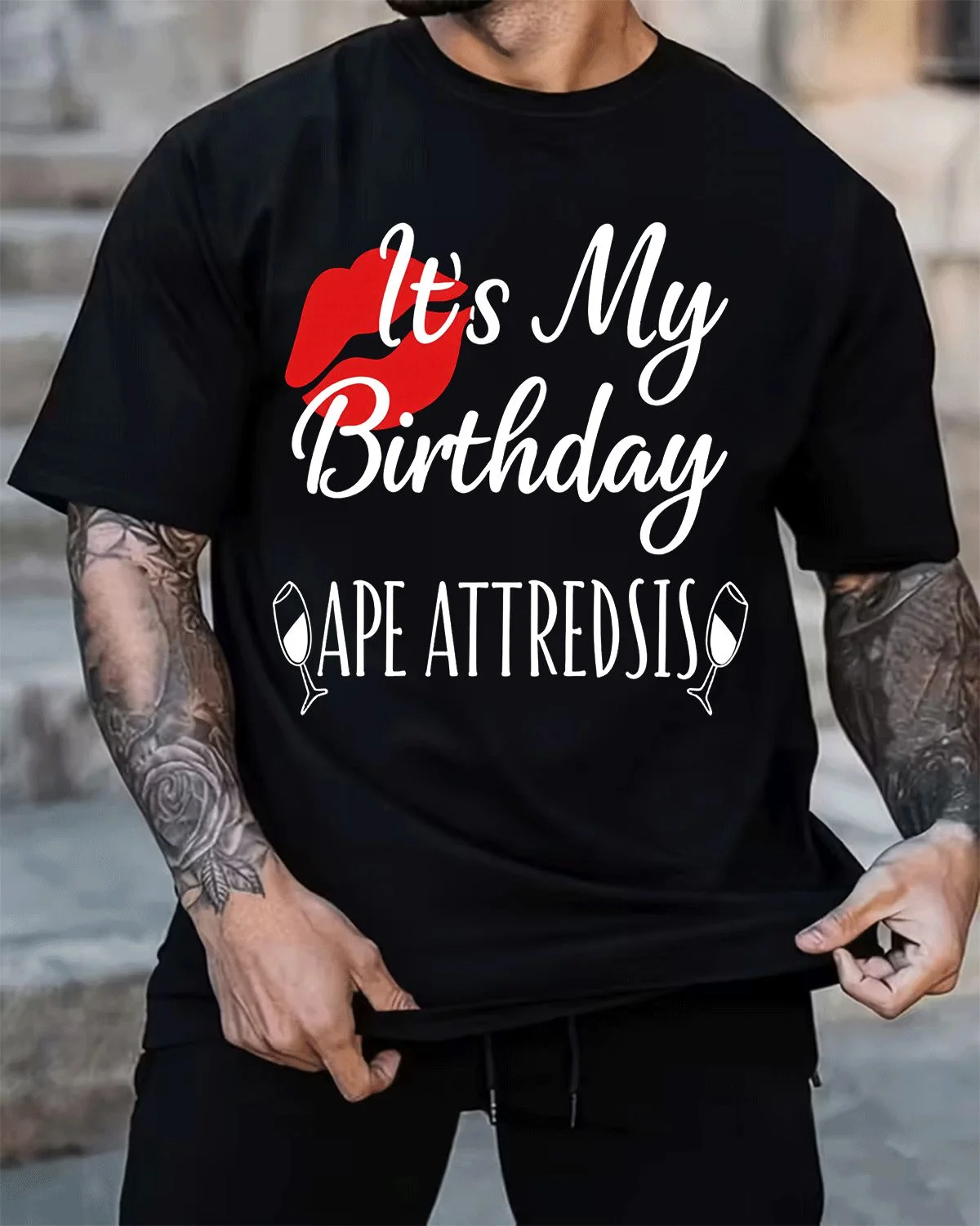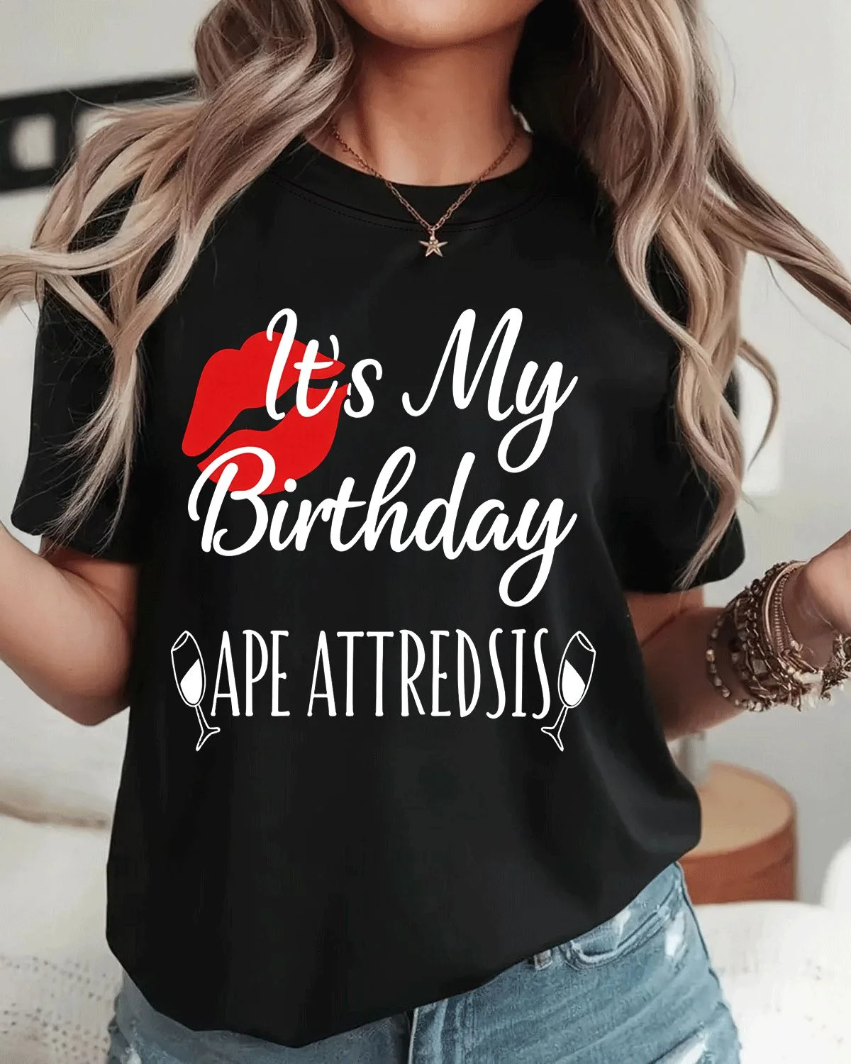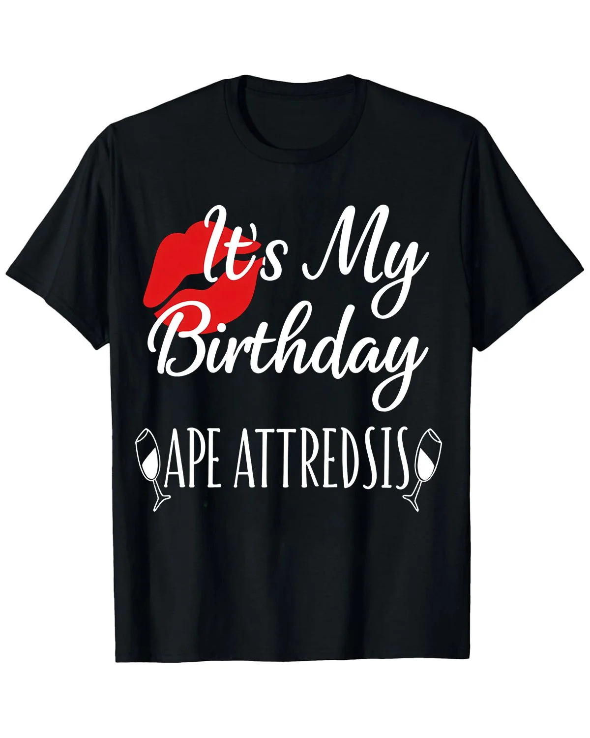 Mom Birthday Lips and Wine Summer Cotton Graphic T Shirt - Casual Chic, Short Sleeve, Soft Fabric, Comfortable Fit