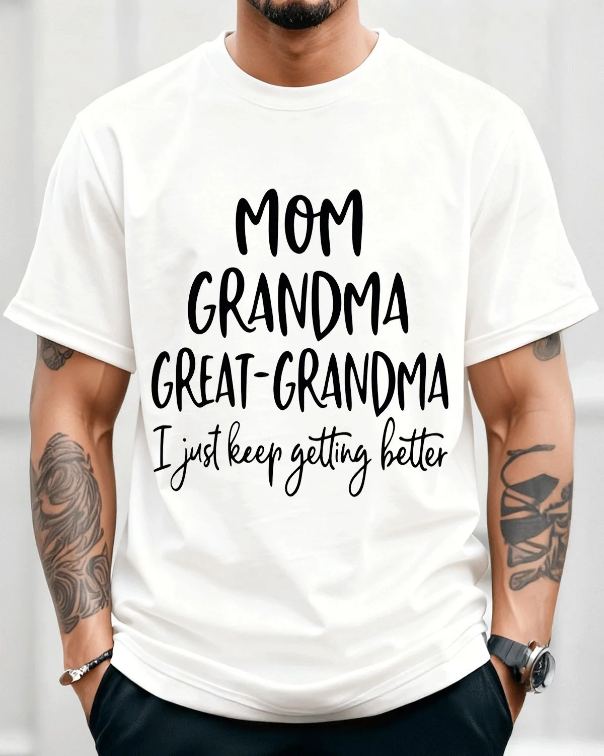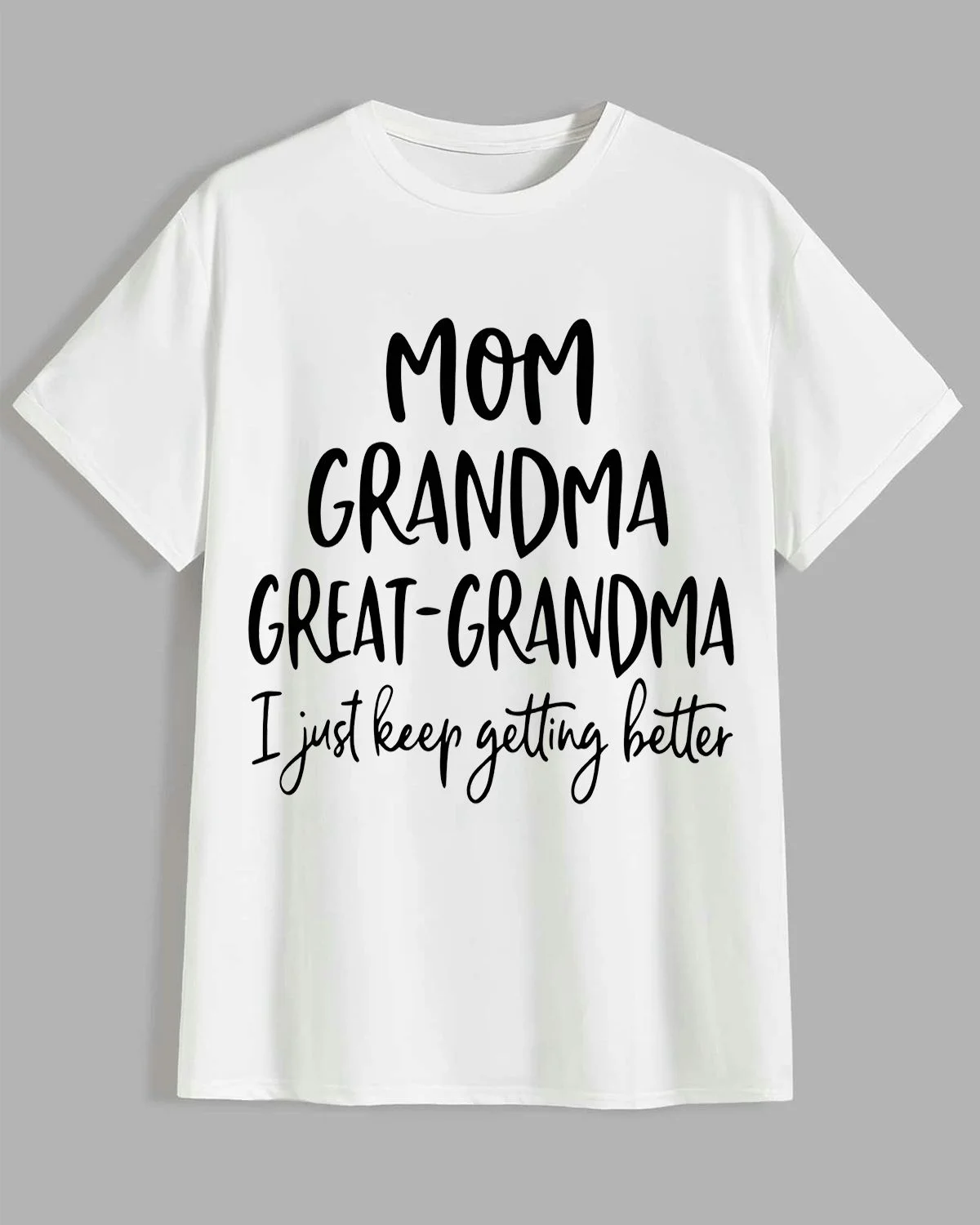 Mom Grandma Great-Grandma Getting Better Summer Cotton Graphic T Shirt - Casual Vintage, Short Sleeve, Soft Fabric, Comfortable Fit