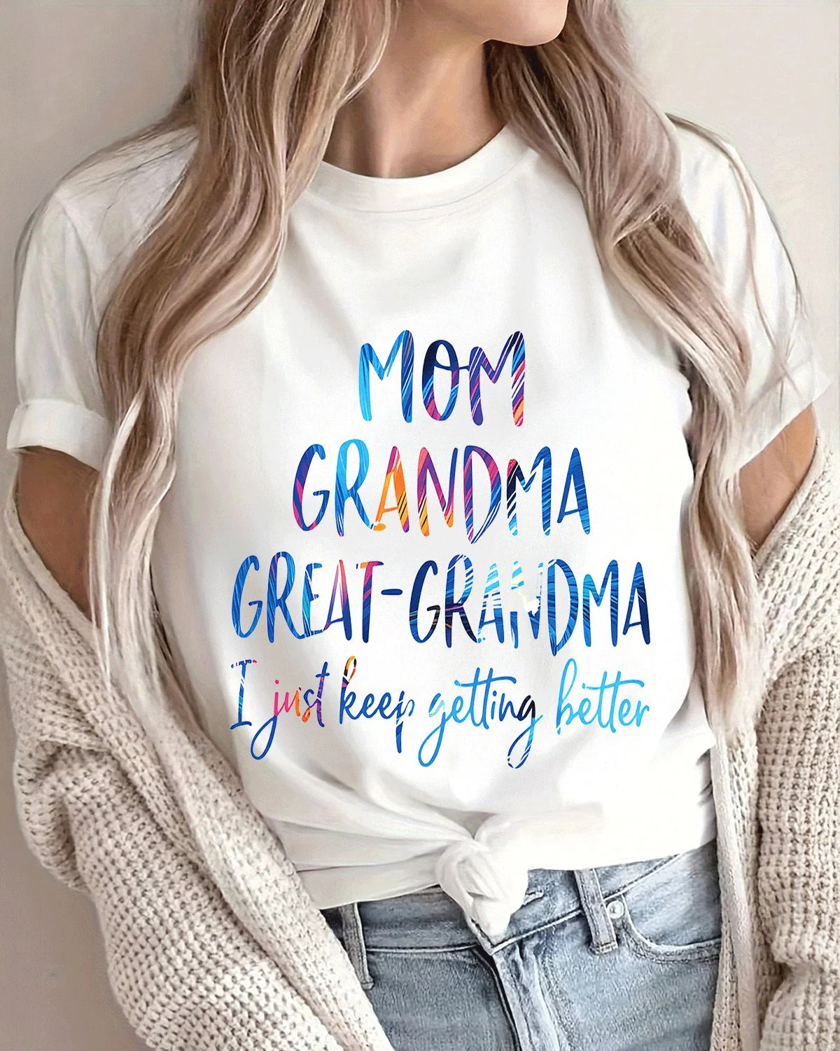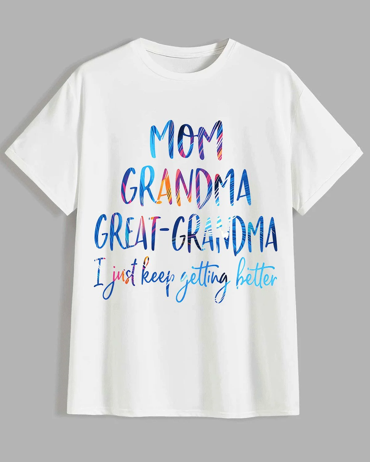 Mom Grandma Great-Grandma Keep Getting Better Summer Cotton Graphic T Shirt - Casual Vintage, Short Sleeve, Soft Fabric, Comfortable Fit