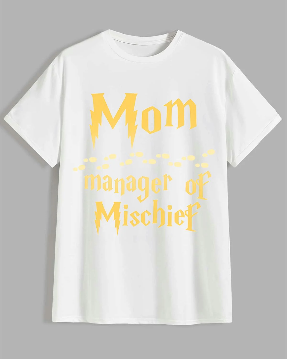 Mom Manager of Mischief Summer Cotton Graphic T Shirt - Casual Funny, Short Sleeve, Soft Fabric, Comfortable Fit