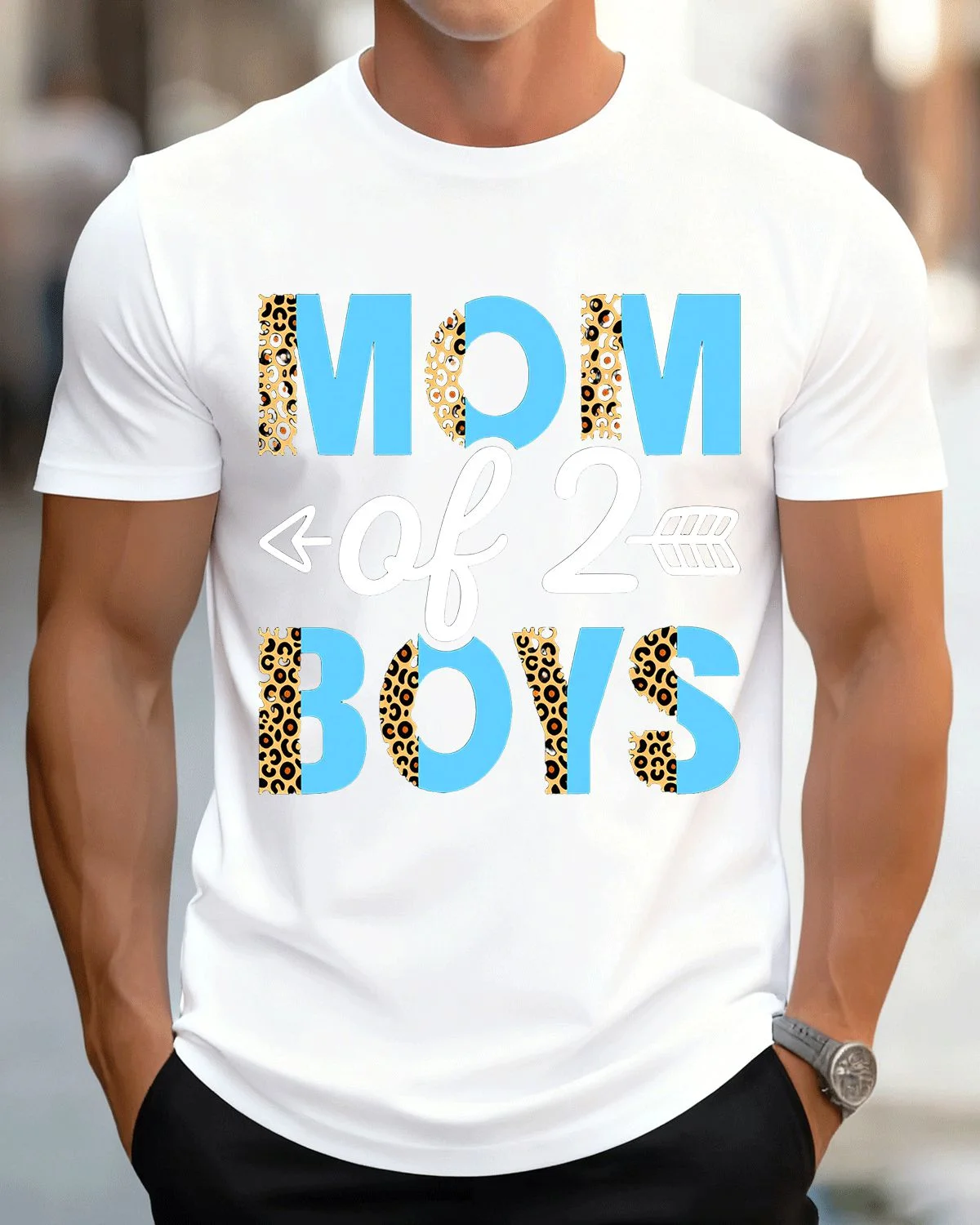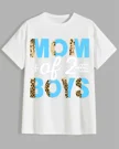 Mom of 2 Boys Summer Cotton Graphic T Shirt - Casual Cool, Short Sleeve, Soft Fabric, Comfortable Fit