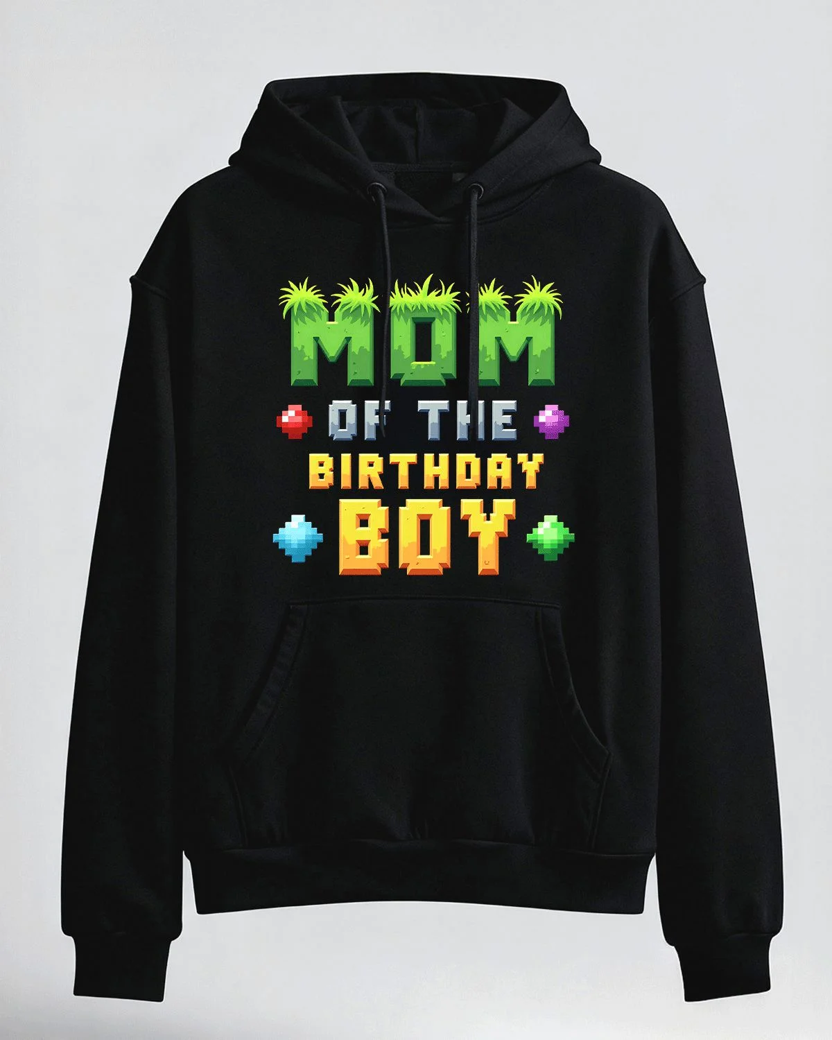 Mom of the Birthday Boy Pixel Art Cozy Graphic Hoodie for Men and Women - Funny Retro, Long Sleeve, Soft Fabric, Comfortable Fit