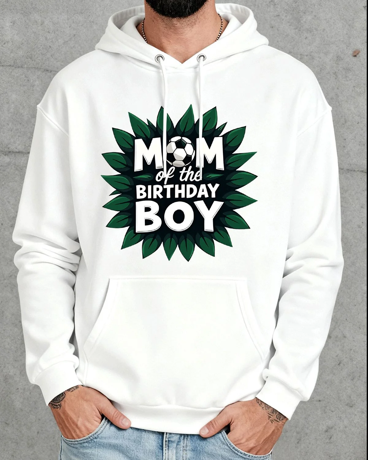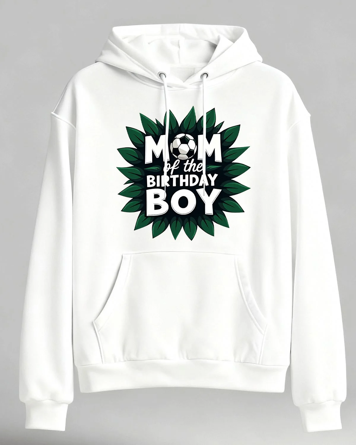 Mom of the Birthday Boy Soccer Cozy Graphic Hoodie for Men and Women - Casual Sporty, Long Sleeve, Soft Fabric, Comfortable Fit