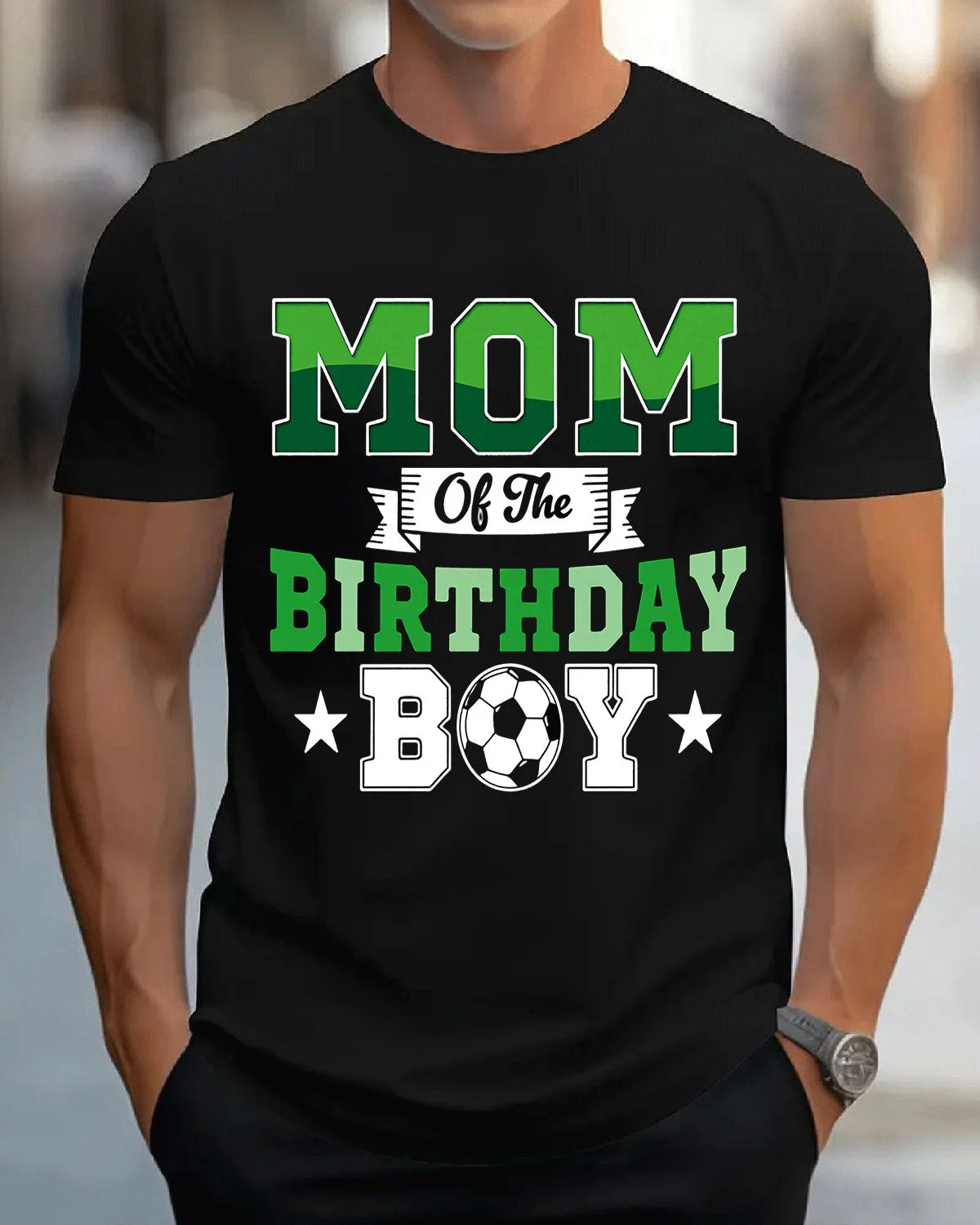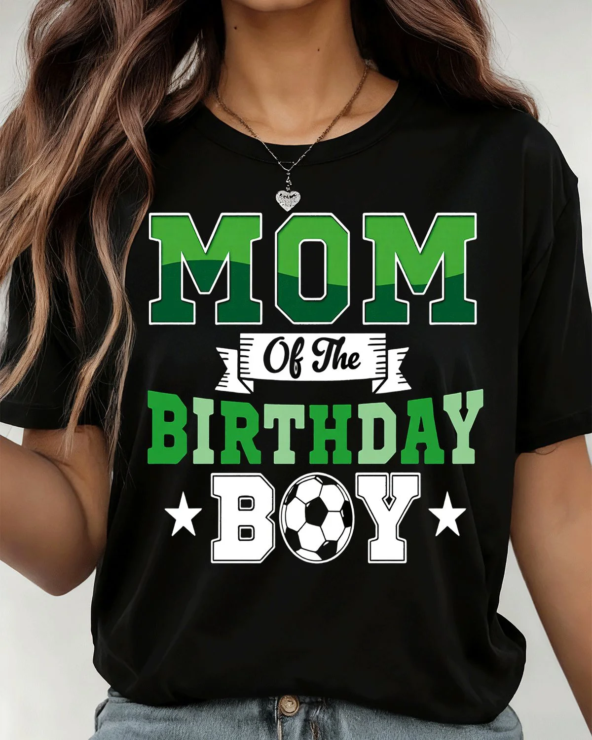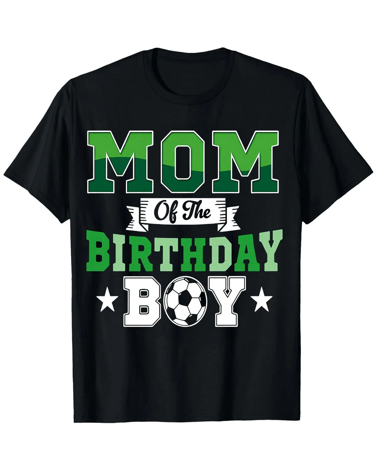 Mom of the Birthday Boy Soccer Summer Cotton Graphic T Shirt - Casual Sporty, Short Sleeve, Soft Fabric, Comfortable Fit