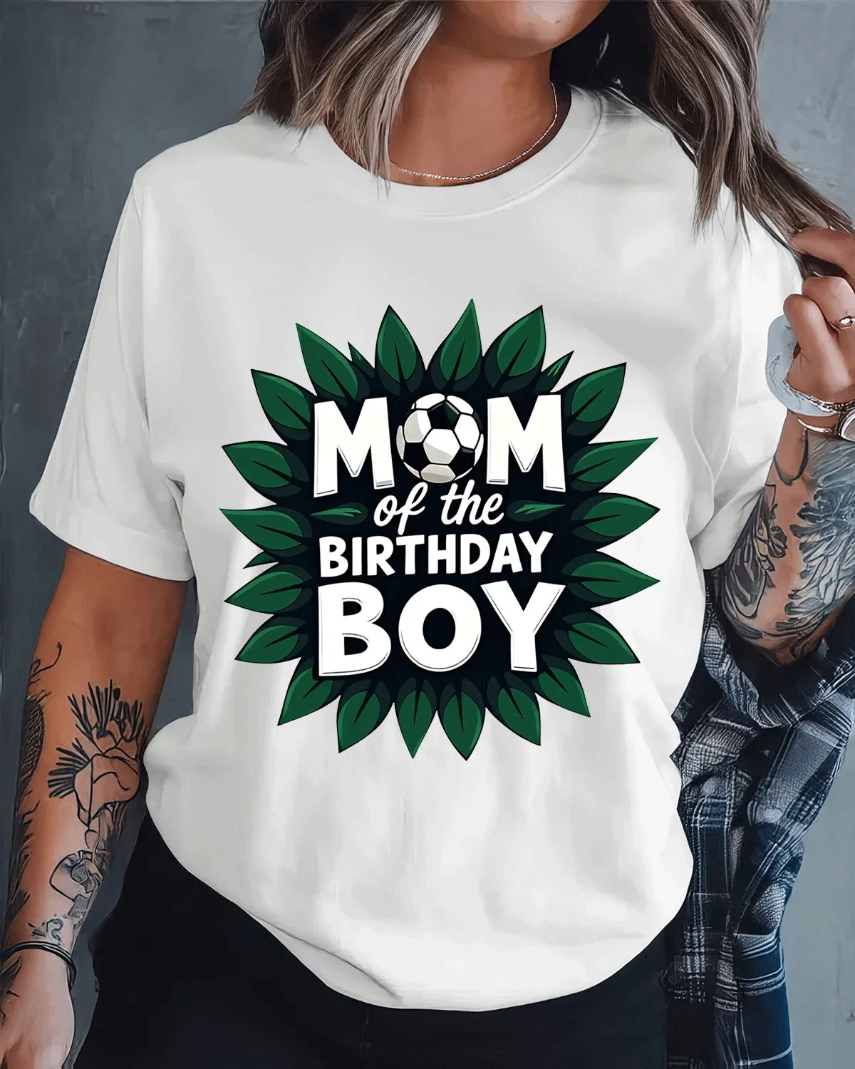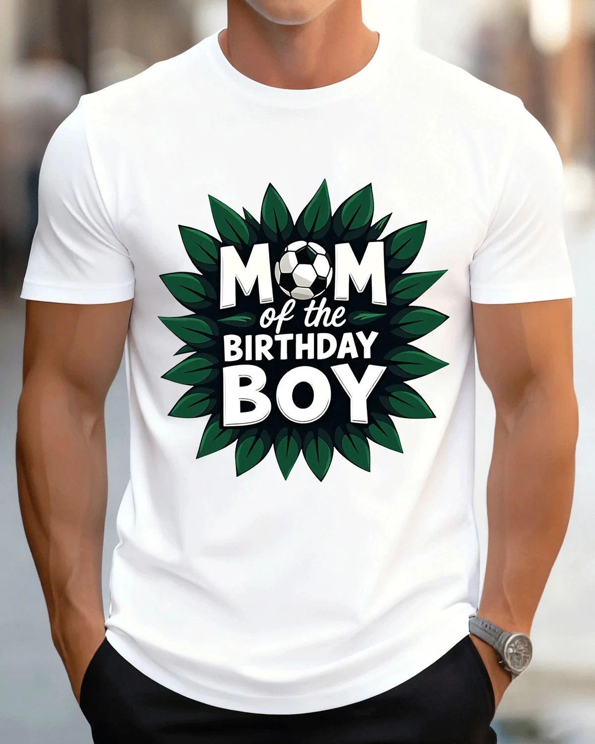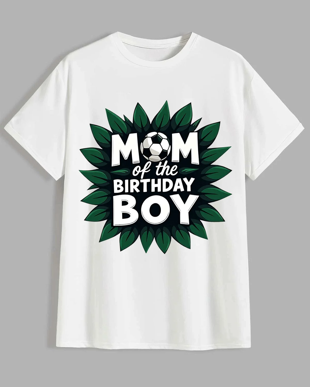 Mom of the Birthday Boy Soccer Summer Cotton Graphic T Shirt - Casual Sporty, Short Sleeve, Soft Fabric, Comfortable Fit