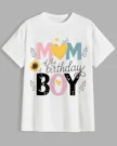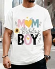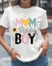 Mom of the Birthday Boy Summer Cotton Graphic T Shirt - Casual Fun, Short Sleeve, Soft Fabric, Comfortable Fit