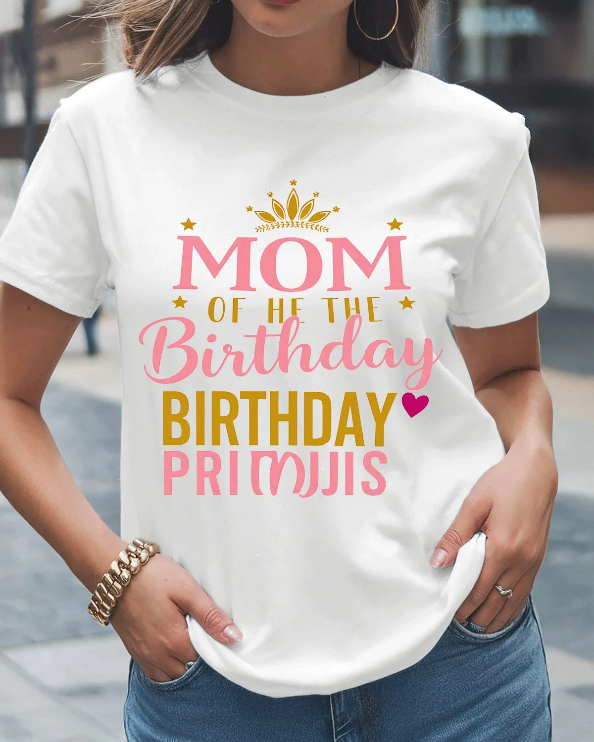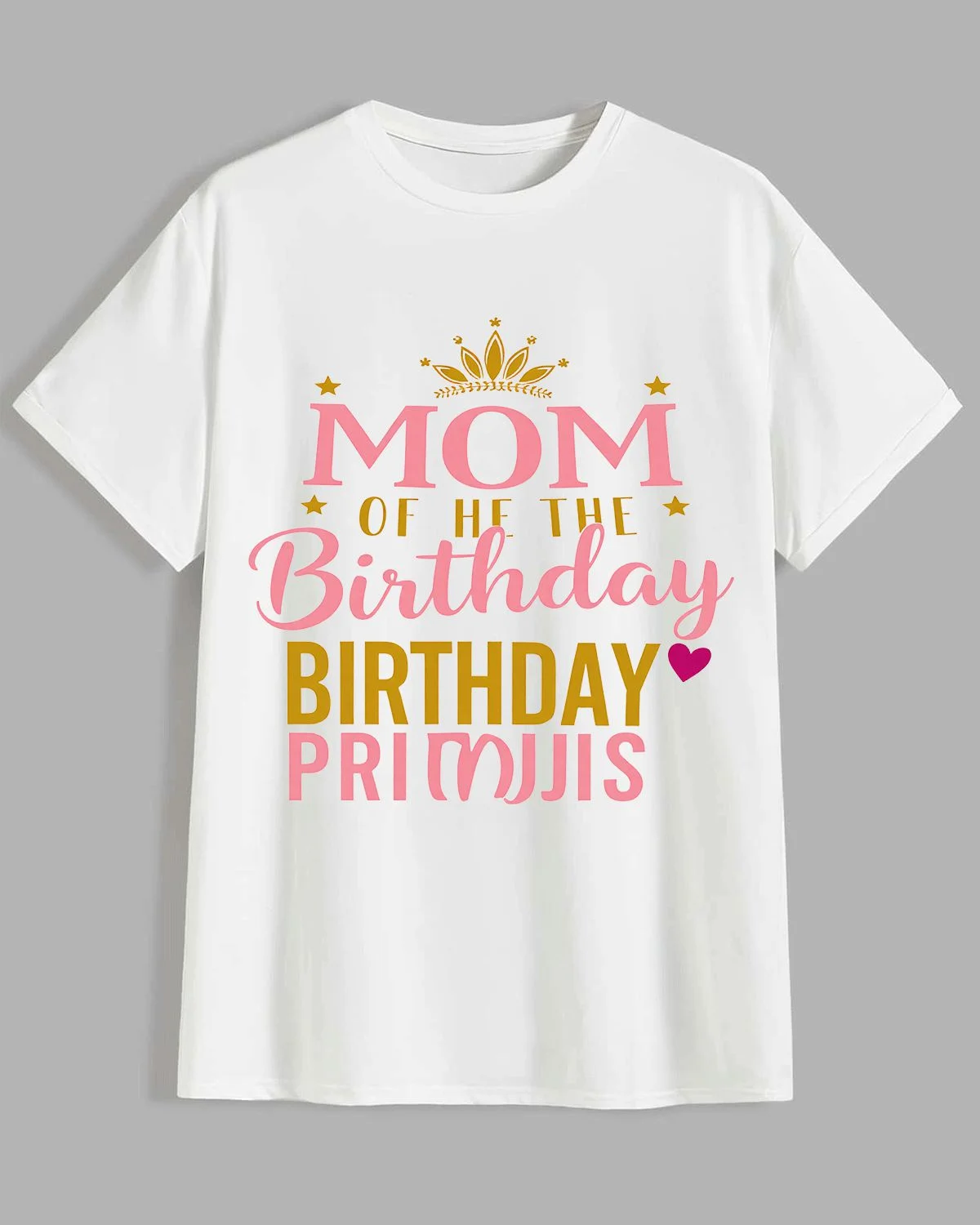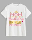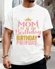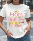 Mom of the Birthday Princess Crown Summer Cotton Graphic T Shirt - Casual Chic, Short Sleeve, Soft Fabric, Comfortable Fit