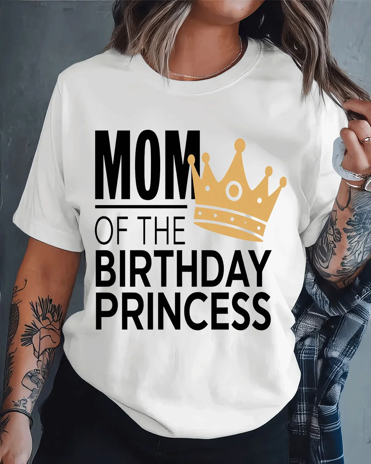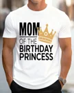 Mom of the Birthday Princess Summer Cotton Graphic T Shirt - Casual Chic, Short Sleeve, Soft Fabric, Comfortable Fit