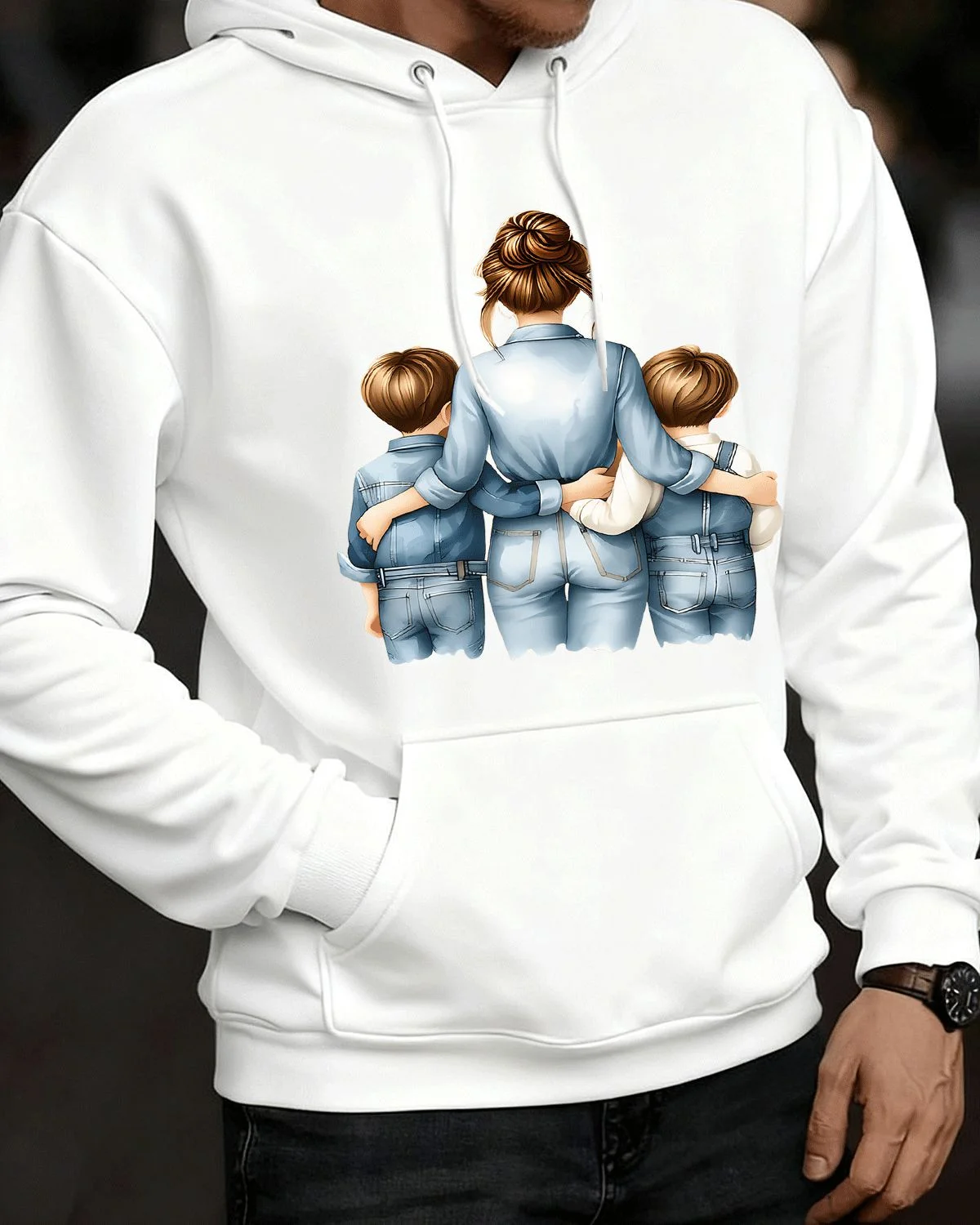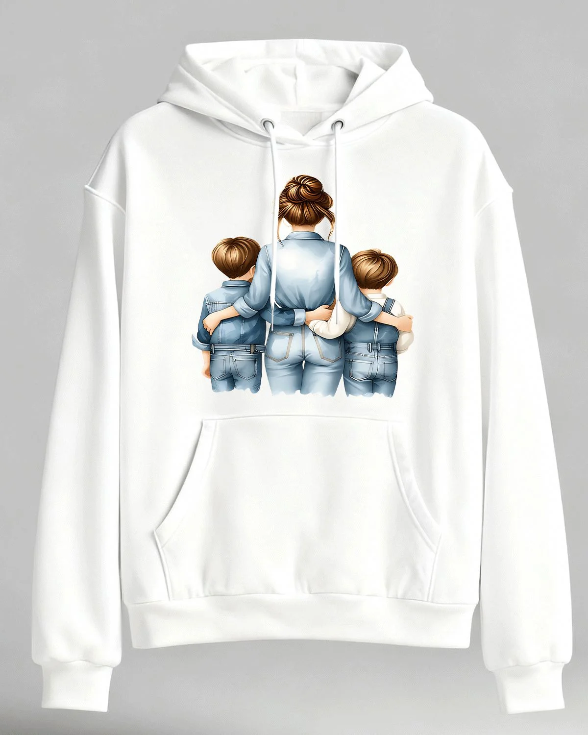 Mom with Two Sons Back View Cozy Graphic Hoodie for Men and Women - Casual Classic, Long Sleeve, Soft Fabric, Comfortable Fit