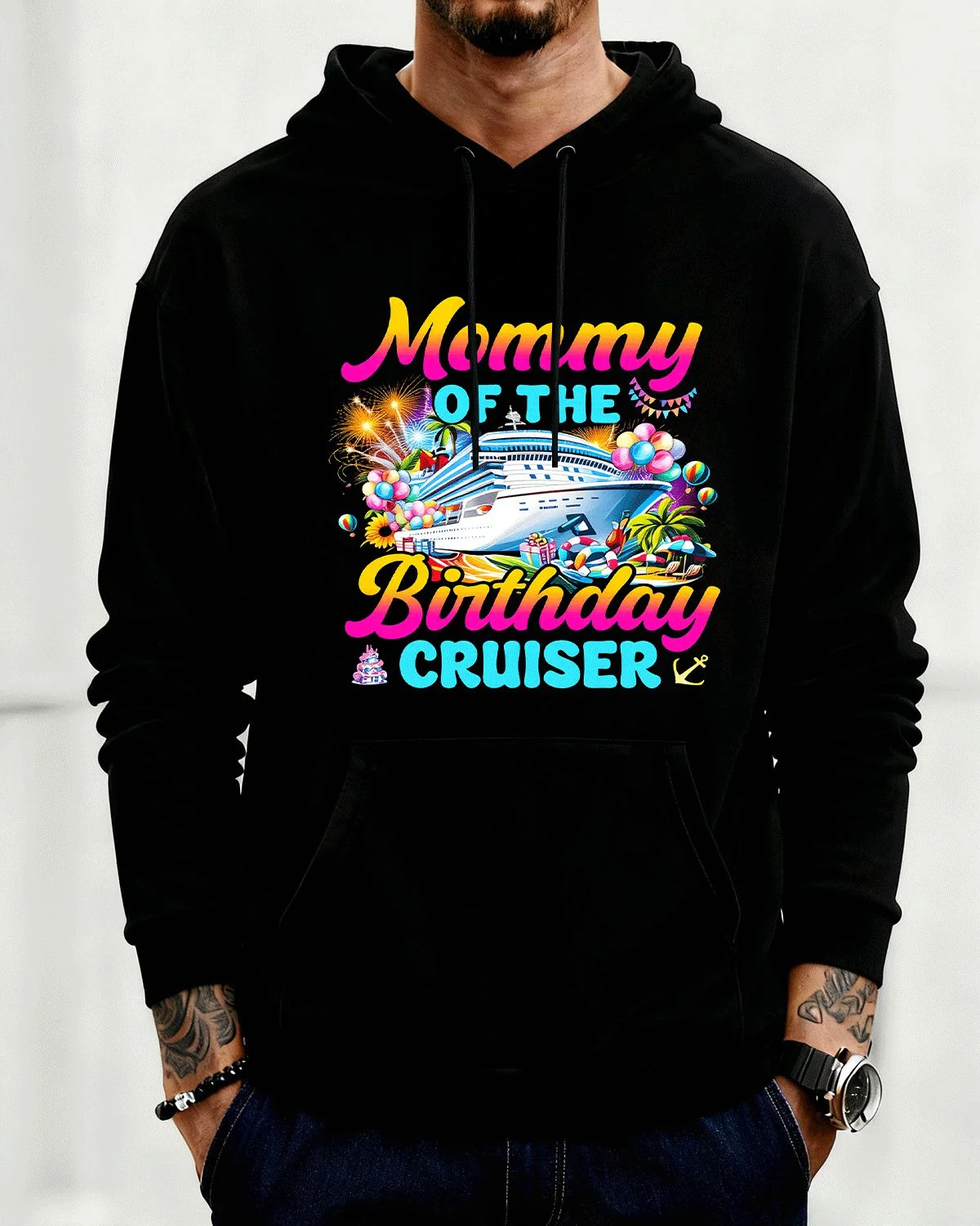 Mommy of the Birthday Cruiser Cozy Graphic Hoodie for Men and Women - Casual Trendy, Long Sleeve, Soft Fabric, Comfortable Fit