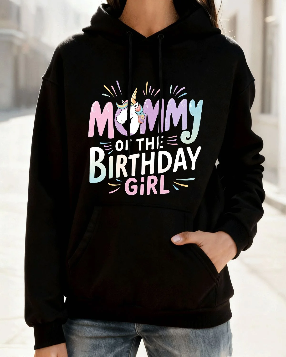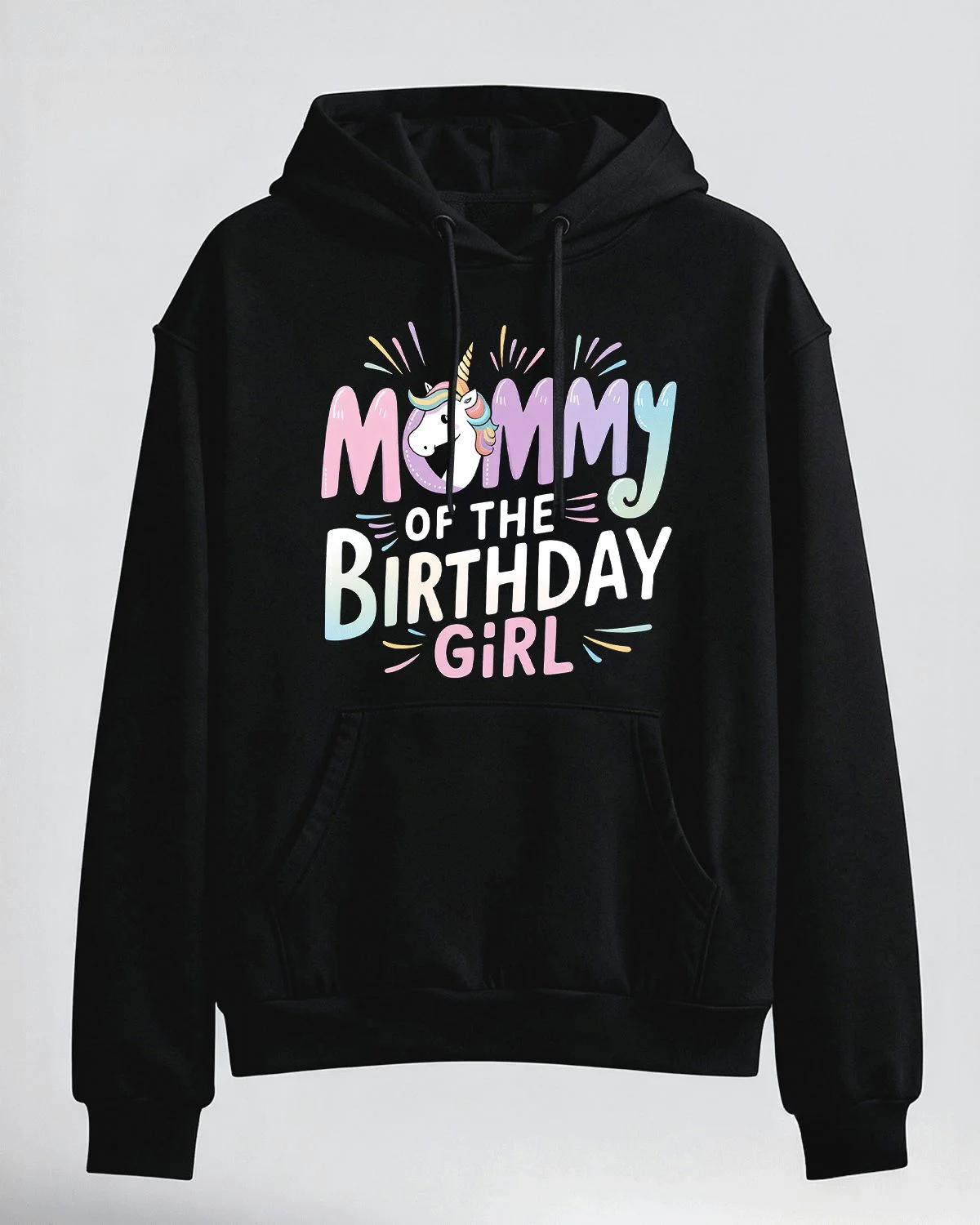 Mommy of the Birthday Girl Unicorn Cozy Graphic Hoodie for Men and Women - Casual Funny, Long Sleeve, Soft Fabric, Comfortable Fit