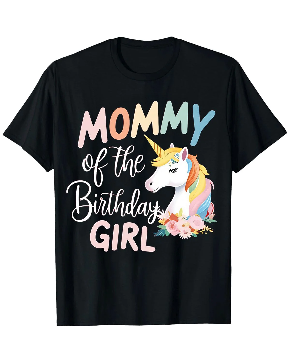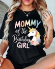 Mommy of the Birthday Girl Unicorn Floral Summer Cotton Graphic T Shirt - Casual Chic, Short Sleeve, Soft Fabric, Comfortable Fit