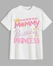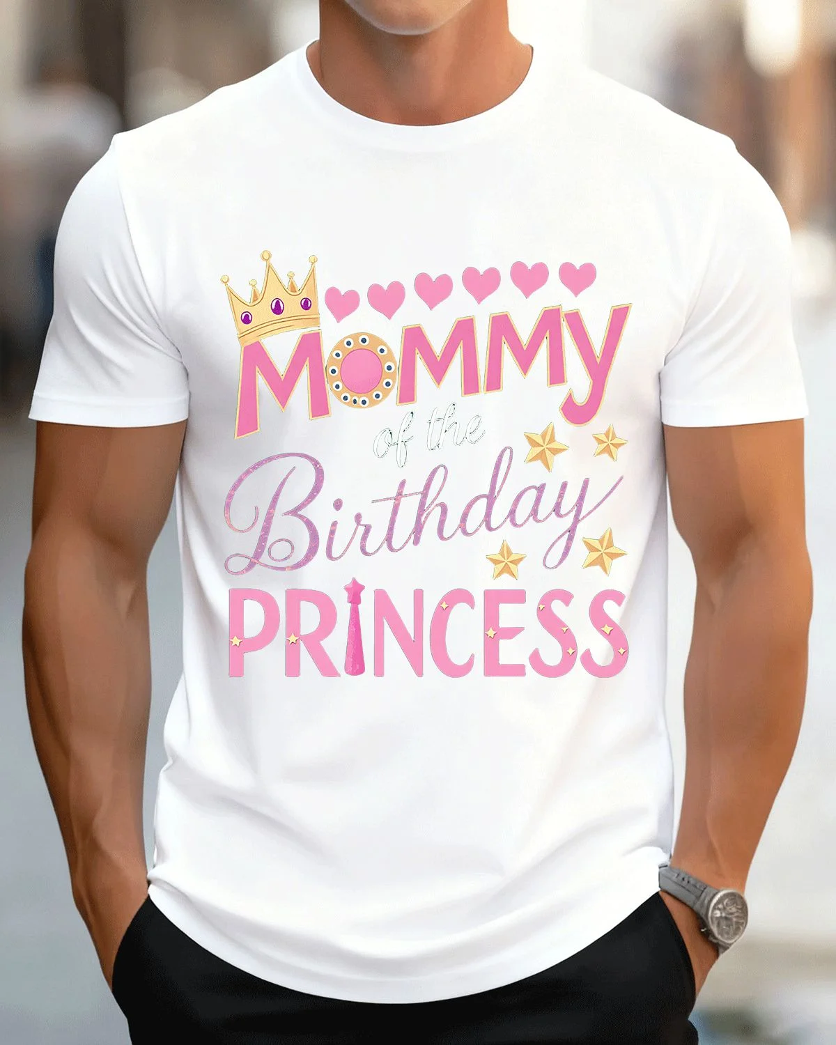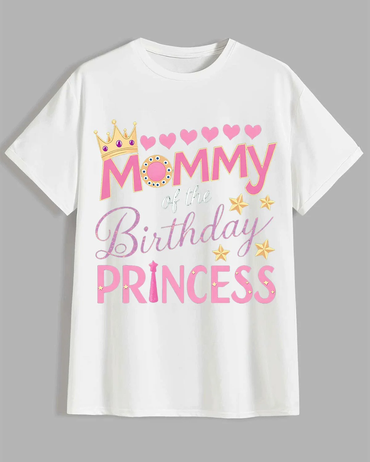 Mommy of the Birthday Princess Summer Cotton Graphic T Shirt - Casual Chic, Short Sleeve, Soft Fabric, Comfortable Fit