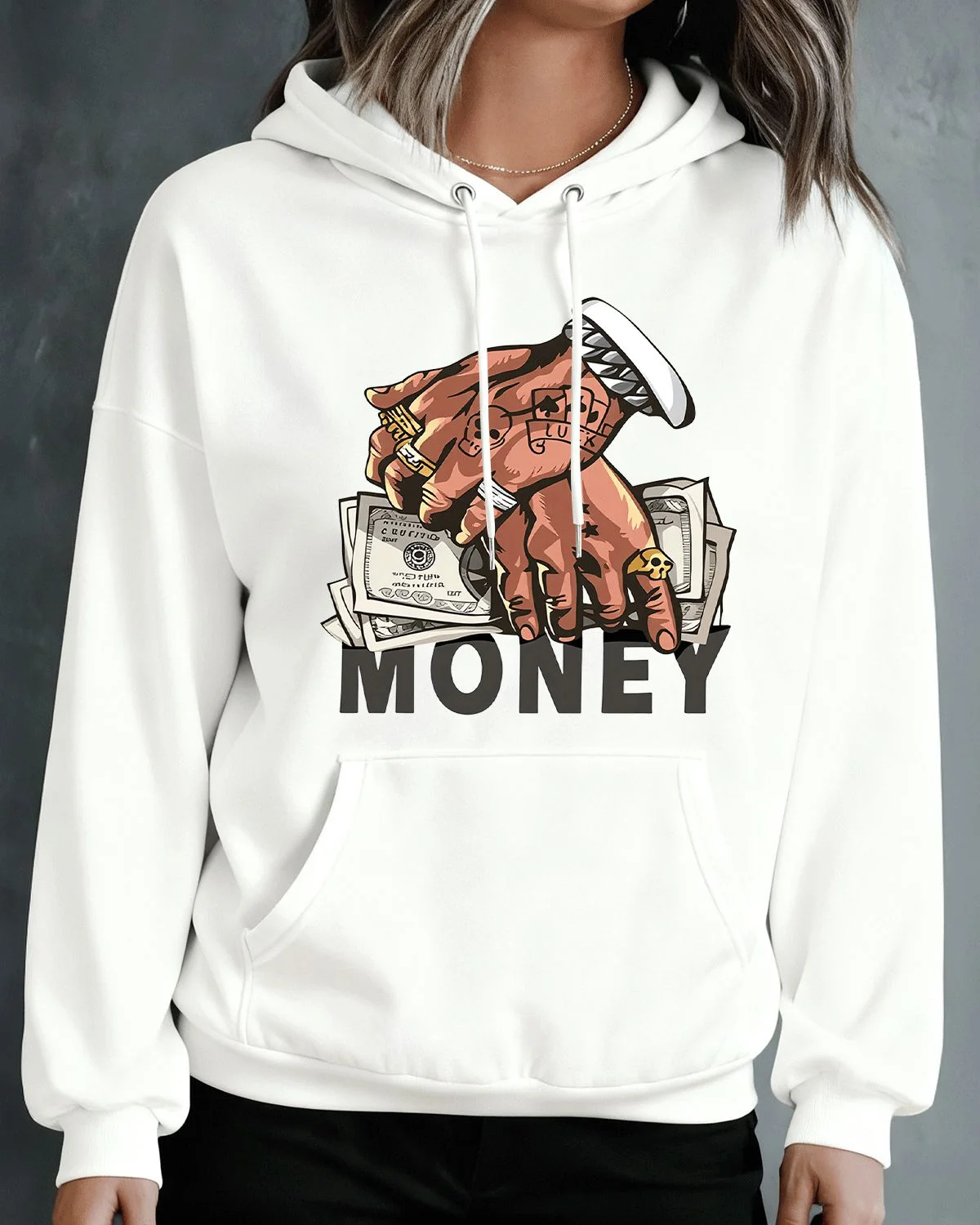 Money Tattooed Hand with Cash Cozy Graphic Hoodie for Men and Women - Urban Street, Long Sleeve, Soft Fabric, Comfortable Fit